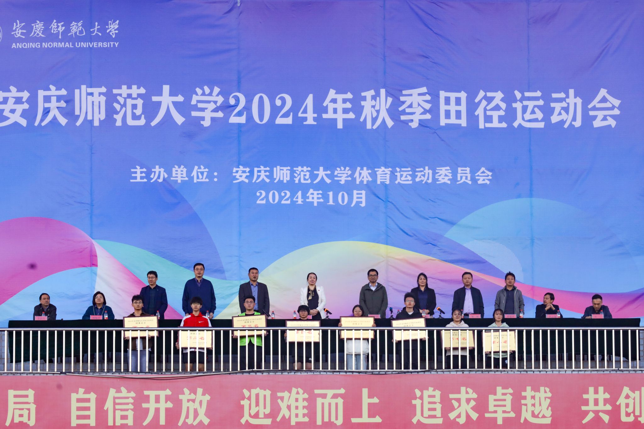 10月25日,随着乙组(专业组)男子4×100决赛的结束,历时3天的2024年秋季田径运动会在龙山校区田径场正式落下帷幕。校党委常委、副校长吴琼,校体育运动委员会委员出席闭幕式,并为获奖学院与运动员颁奖。