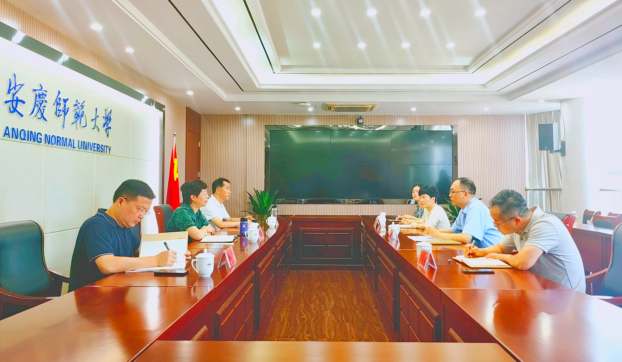 7月31日,人力资源社会保障部职业能力建设司技工院校管理处副处长晋晓磊、省人社厅职业能力处副处长徐文军、安庆市人社局相关负责人来校调研。校长彭凤莲、校党委常委张红飞出席座谈会。