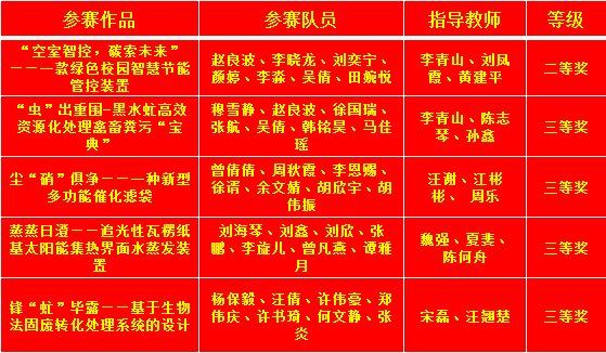 近日,第十八届全国大学生节能减排社会实践与科技竞赛结果公布。太阳成官网参赛团队获全国二等奖1项、三等奖4项。
