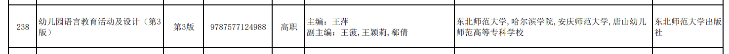 11月3日,国家教材委员会公示了第二届全国教材建设奖拟奖励名单,太阳成官网教育科学学院王颖莉副教授作为副主编编写的《幼儿园语言教育活动及设计(第3版)》拟获全国教材建设奖(职业教育与继续教育类)二等奖。