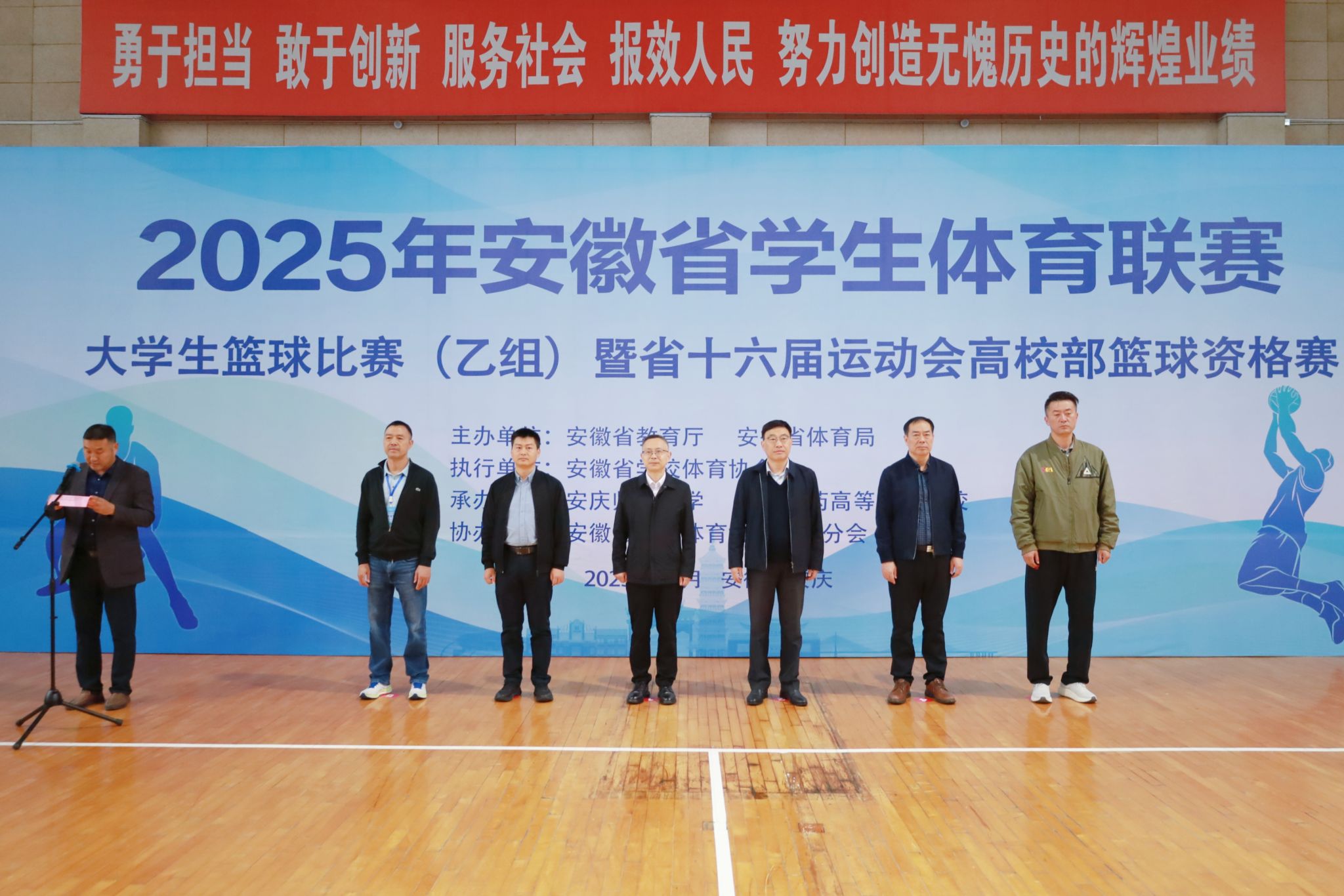 校党委常委、副校长徐晓宁,安庆医药高等专科学校党委副书记、校长朱庆丰,省教育厅体卫艺处二级主任科员陆涛,省学校体育协会副理事长、秘书长马纯,省学校体育协会副理事长、比赛监督陈有忠,省篮协裁判委员会副主任、技术代表滚军军等领导出席开幕式。