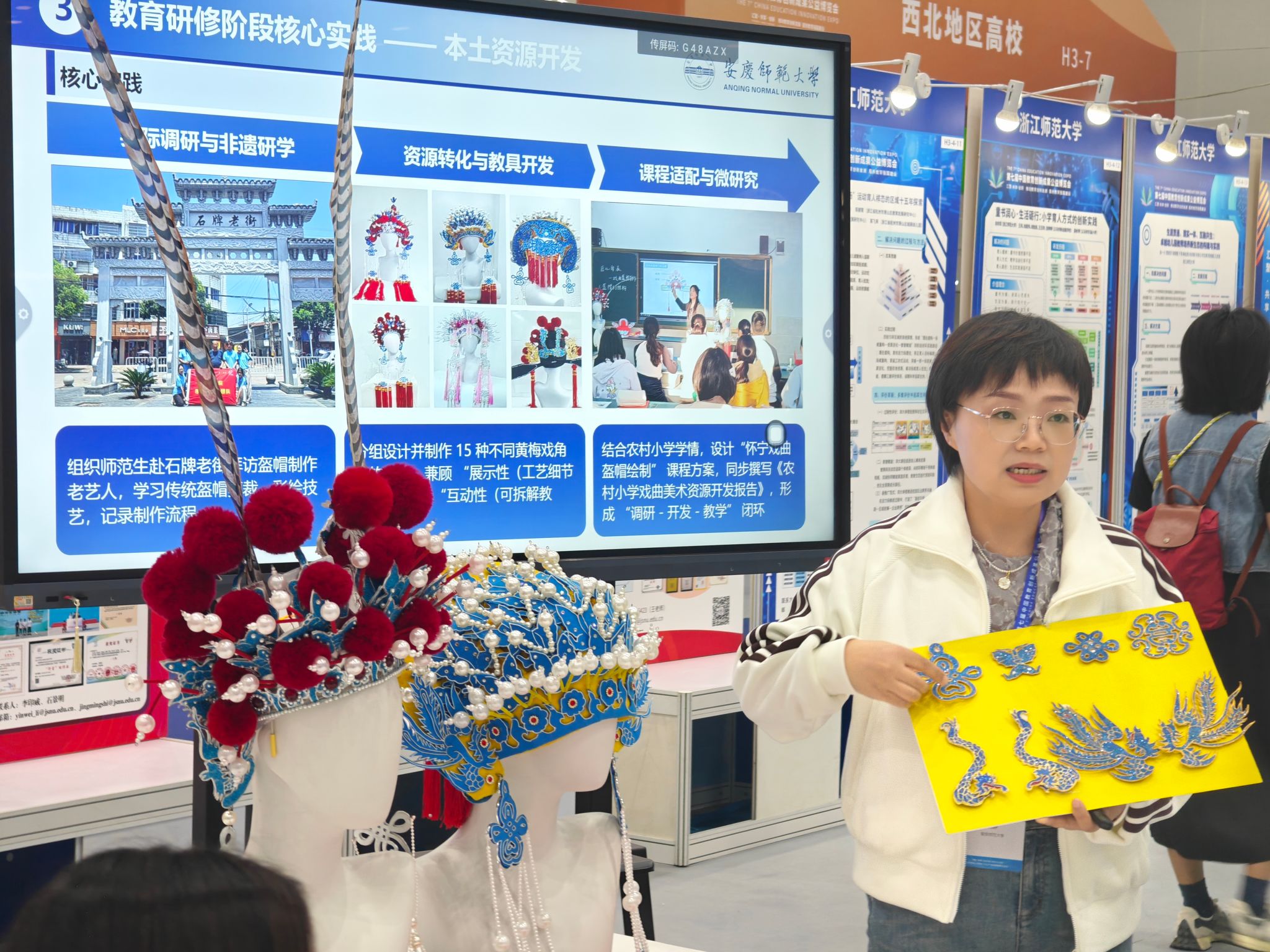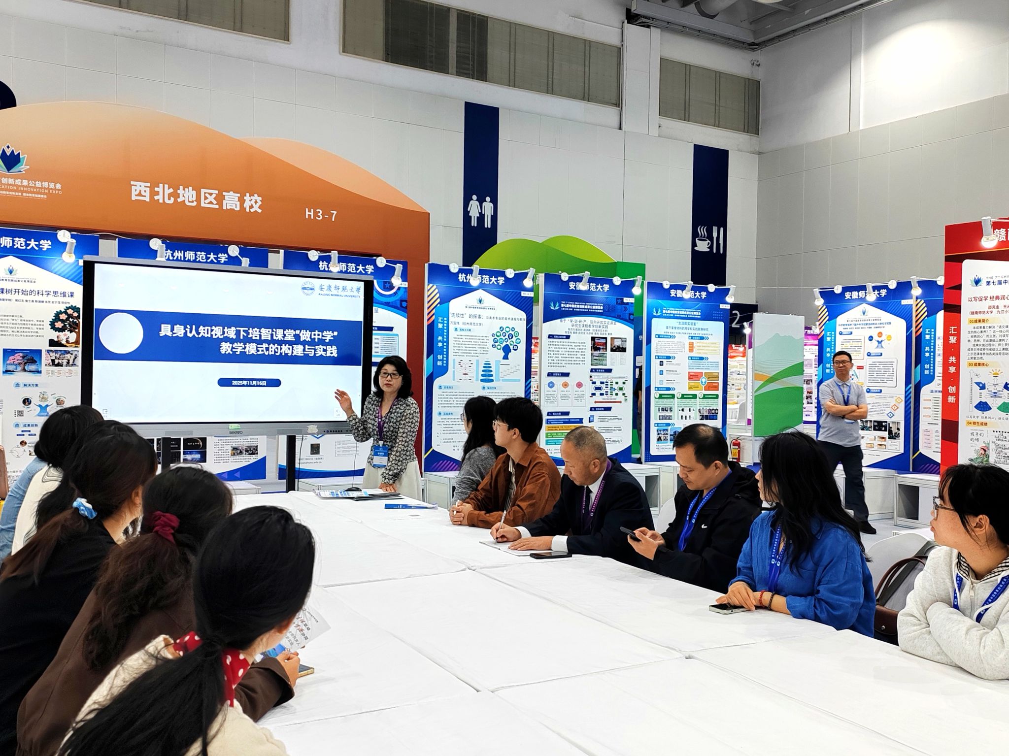 展会期间,《大别山革命老区卓越“红色园丁”培养的创新实践》《“一花一叶见艺彩”自然美育课程包---多感官本土化科学教育创新方案》《菌绘育人——中小学微生物科艺融合STEM教育体系》《智擎有机融创,赋能优化师范人才培养路径》)《基于产教融合的校企共建微专业的协同育人机制建设--一太阳成tyc7111cc为例》《三级联动 观察赋能:小学数学学科实践育人方式变革的区域行动样本》《具身认知视域下培智课堂“做中学”教育模式的构建与实践》《美术师范生能力分层培养“二元三阶六力”模式》等8项成果参与工作坊汇报展示,与参会嘉宾进行深入交流互动。