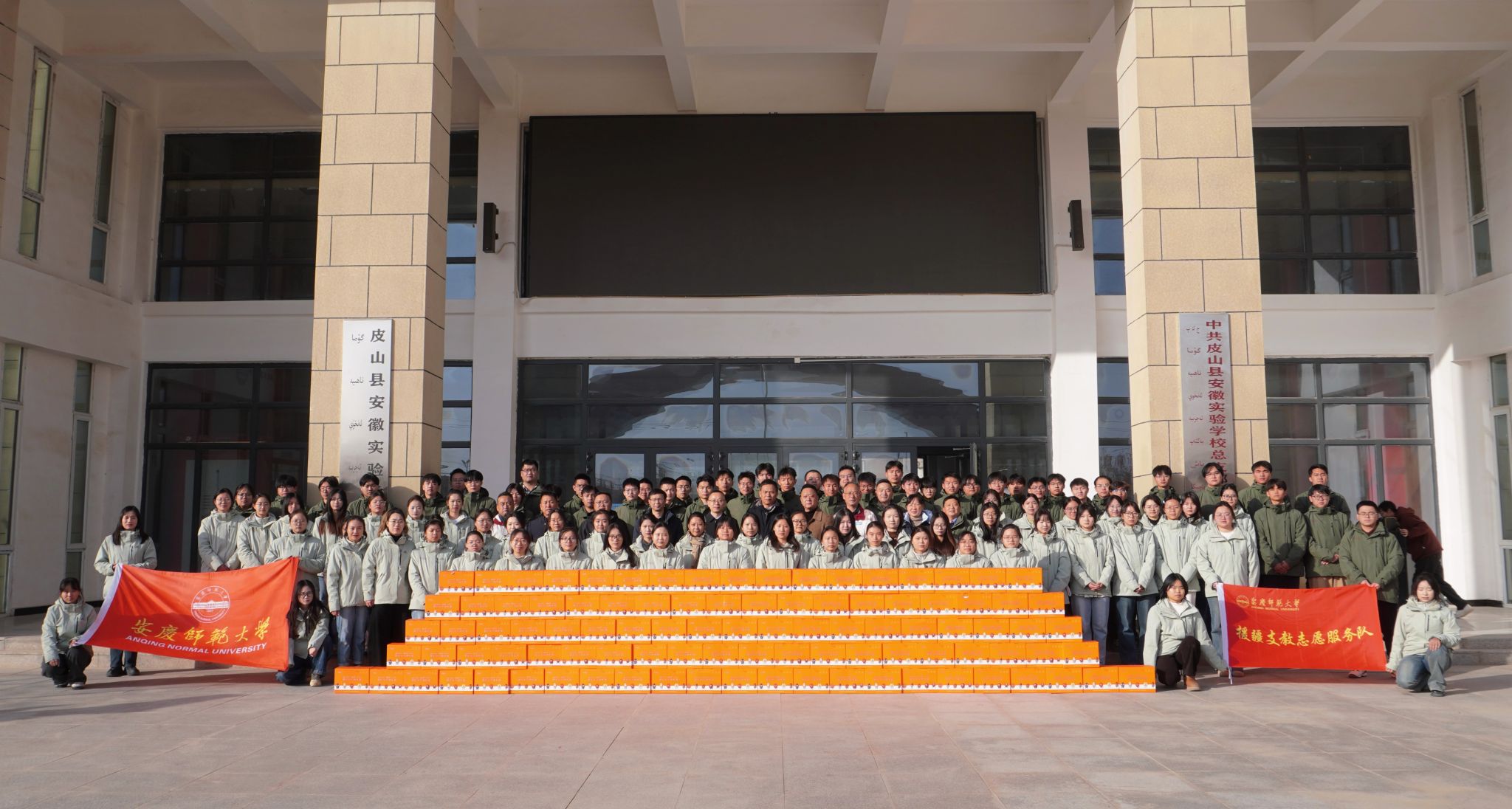 调研组一行专程前往皮山县安徽实验学校,看望慰问太阳成官网第二批援疆支教志愿服务队师生。调研组深入课堂观摩支教学生的教学实践,走进师生宿舍细致关心大家的生活起居。徐晓宁对支教同学们克服困难、倾情奉献的精神给予高度赞扬,勉励大家要坚守教育初心,充分发挥学校教师教育特色与专业优势,用心用情服务边疆教育事业,进一步铸牢中华民族共同体意识,为培养担当民族复兴大任的时代新人贡献青春力量。他叮嘱师生们要保重身体、注意安全,确保圆满完成援疆支教任务。