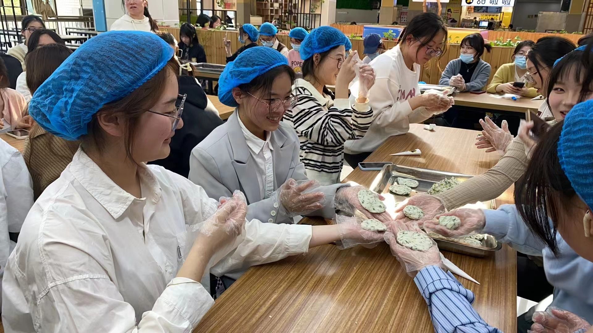 龙湖食堂组织学生动手制作青团。西苑食堂一楼组织了一场百人包青团,一场百人制作蒿子粑的活动。西苑食堂二楼组织了同学制作小蒜粑粑。东苑二食堂和敬敷食堂组织了制作蒿子粑的活动。另外各食堂都制作了青团和蒿子粑供师生免费品尝。