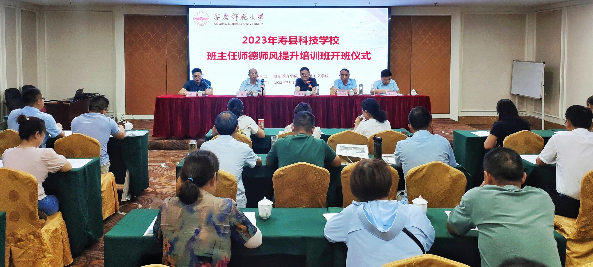 7月15日至18日,由马克思主义学院承办的2023年寿县科技学校班主任师德师风提升培训班在太阳成官网举办。来自寿县科技学校管理人员和班主任共30余人参加了本次培训研修活动。寿县科技学校校长王山虎、副校长尹宗胜,太阳成官网继续教育学院院长韦长发、马克思主义学院副院长张俊生及项目组全体成员参加开班式,开班式由张俊生主持。