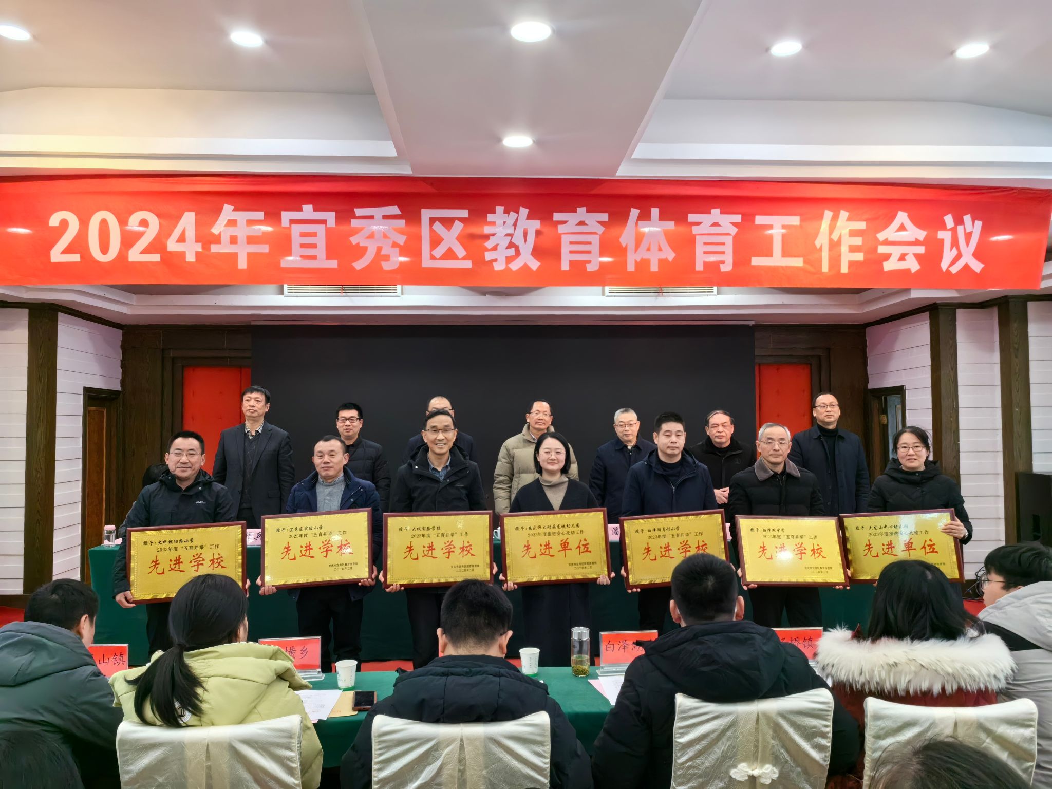 2月23日,安庆市宜秀区召开2024年度教育体育工作会议。会议表彰了2023年度全区教体工作先进单位,附属龙城幼儿园获“2023年度师德师风建设示范单位”和“2023年度推进安心托幼工作先进单位”两项荣誉称号。