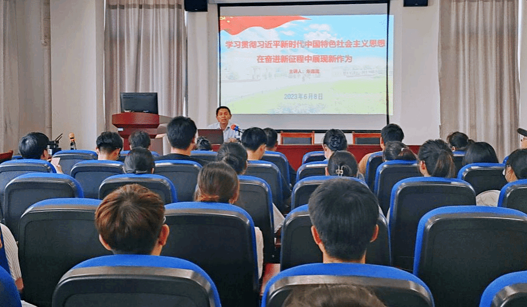 6月8日,生命科学学院党委书记朱昌流在G202以“学习贯彻习近平新时代中国特色社会主义思想 在奋进新征程中展现新作为”为主题讲授专题党课。学院园林教研室党支部、生态学教研室党支部全体教师党员、部分学生党员代表、发展对象和入党积极分子代表共50余人参加了此次党课学习。