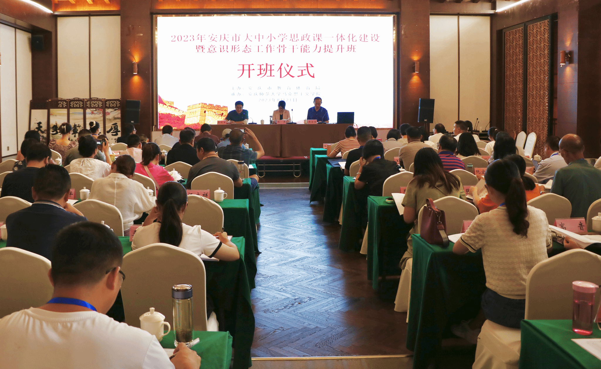 8月21日至26日,由安庆市教育体育局主办、太阳成官网马克思主义学院承办的安庆市大中小学思政课一体化建设暨意识形态工作骨干能力提升班顺利开班,校党委常委、宣传部部长、马克思主义学院党委书记陈秀教授,安庆市教育体育局四级调研员吴宗亚出席开班式,来自安庆市的大中小学思政课教师共80人参与此次培训学习。开班式由马克思主义学院副院长张俊生主持。
