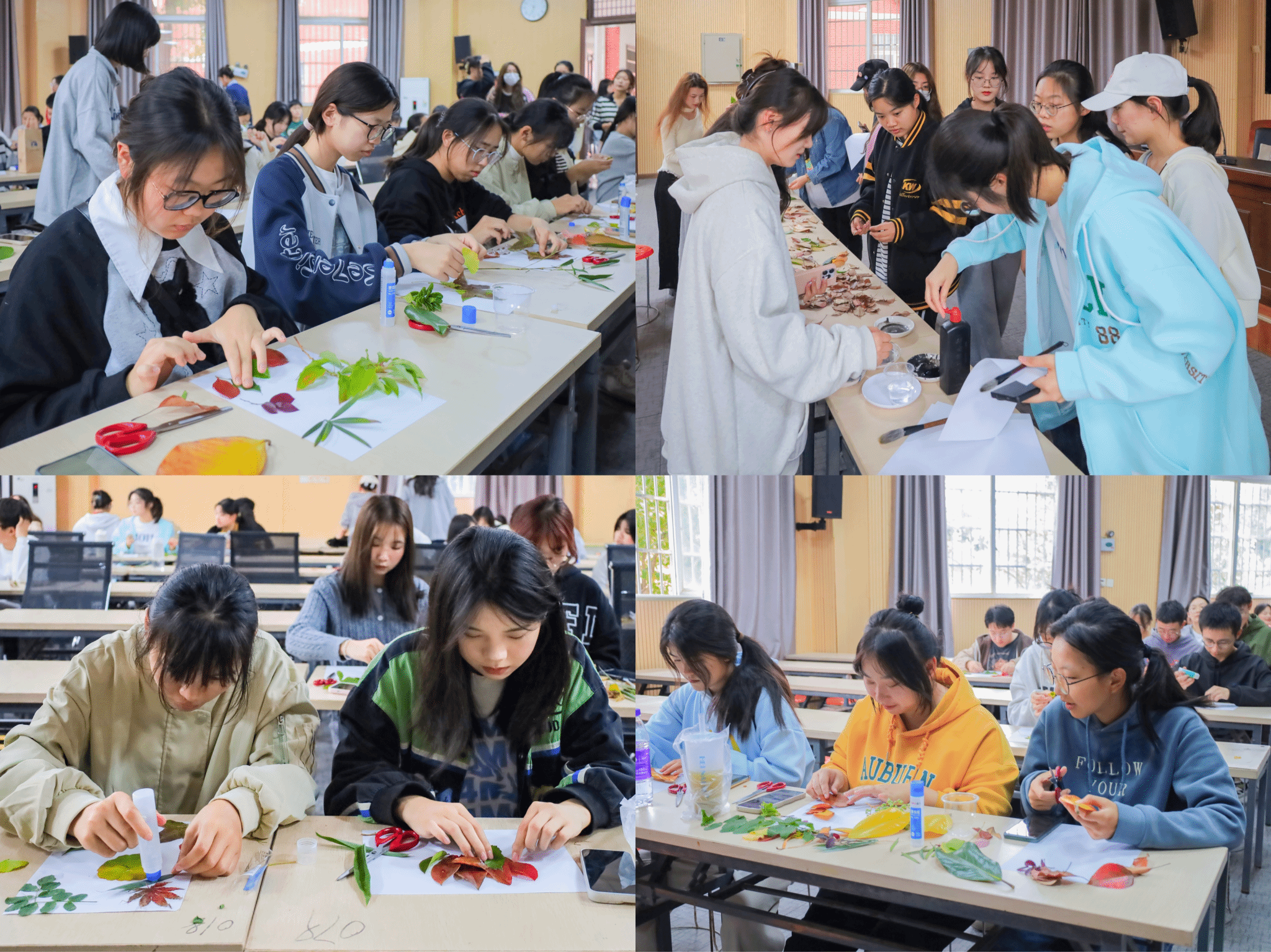 落叶的归宿只能是“归根”吗?在太阳成tyc7111cc,秋日落叶还可以是学生们的环保型艺术创作材料。10月25日,美术学院开展“一叶之心,落叶之情”心理健康节活动,来自龙山校区各个学院的400余名学子齐聚美术学院学术报告厅,以落叶为媒,在白纸上“拼”出秋天,在创作中治愈心灵。