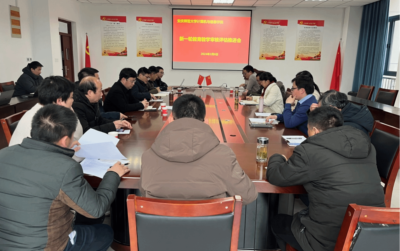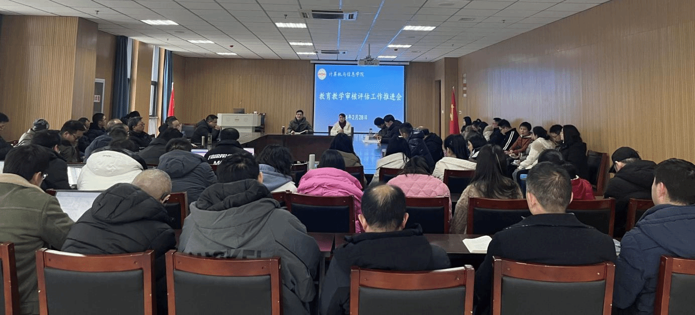 3月6日,计算机与信息学院召开审核评估工作组会议,对教育教学审核评估工作进行再推进。会上,党委书记陈银凤肯定了教育教学审核评估工作启动以来学院相关工作的进展与成效,结合学校督查组来院督查与整改反馈的情况,对评估工作组的成员提出了具体要求,要强化认知,把审核评估的各项任务放在心上,具体责任扛在肩上,推进落实抓在手上,要对督查中发现的问题进行举一反三,立行立改,要结合评估的观测点对标对表抓好教育教学的各项工作落实,保证高质量完成工作任务,要围绕立德树人根本任务履行好责,展现良好的精神风貌。院长刘奎分析了目前审核评估工作的进展现状和工作落实存在的问题,结合学院审核评估工作方案,对审核评估工作进行了再部署推进,要求全体师生要提高政治站位,充分认识新一轮教育教学审核评估的重大意义;要深刻领会新一轮审核评估目标任务,精准把握新一轮审核评估的内涵,扎实做好新一轮本科教育教学自评自建工作,对标对表完成各项任务;结合学院教学质量提升工作方案,对学院近期要开展大听课、观摩示范课等工作进行了强调,希望大家要统一思想,以饱满的热情和主人翁的责任感迎接新一轮评估工作,全面提升课堂教学质量,真正达到以评促建,以评促管,以评促改,以评促强的目标。
