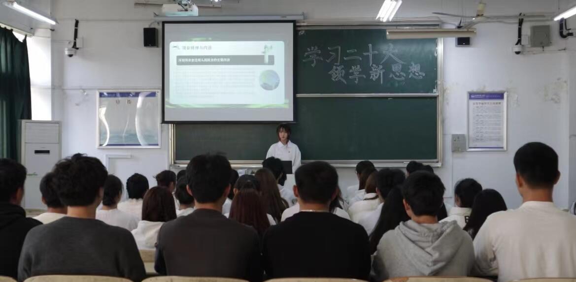 11月20日,体育学院在龙山校区文渊楼203教室开展“学习二十大、领学新思想”专题学习活动,组织学院学生通过线上线下相结合的方式,深入学习宣传贯彻党的二十大精神。学院学生党员、入党积极分子和学生会全体成员参加此次活动。
