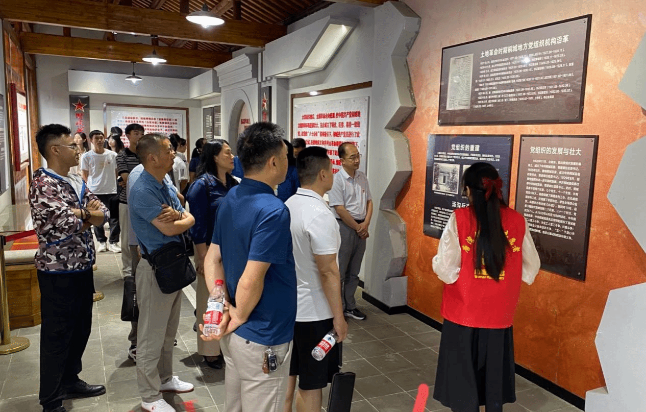 七一前夕,体育学院深入开展学习贯彻习近平新时代中国特色社会主义思想主题教育,举行“喜迎七一、砥砺初心”革命传统教育主题党日活动。学院党政领导带领全体教师党员、学生党员代表,先后前往桐城市唐湾镇蒋潭村中共桐怀潜“一大”会议旧址、怀宁县月山镇铁铺岭战斗遗址,走访革命遗址、学习革命历史、感受革命情怀、砥砺革命精神。