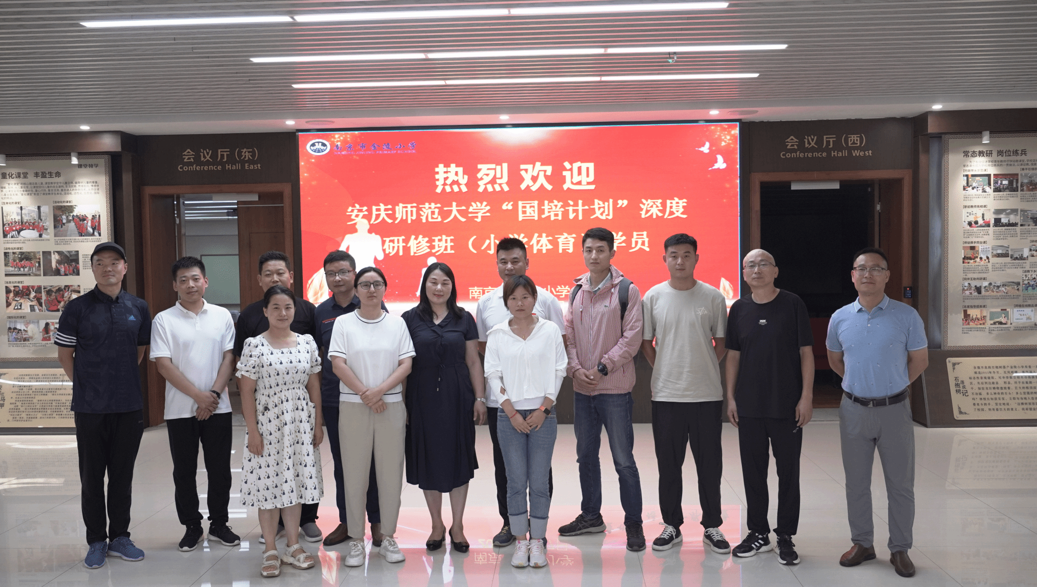 7月7日-8日,太阳成官网承办的“国培计划(2023)”——安徽省小学体育教师深度研修班赴南京市开展名校访学活动。体育学院副院长林秋菊、南京市小学体育教研员陆伟主任、国培项目团队成员以及全体国培班学员参加活动。