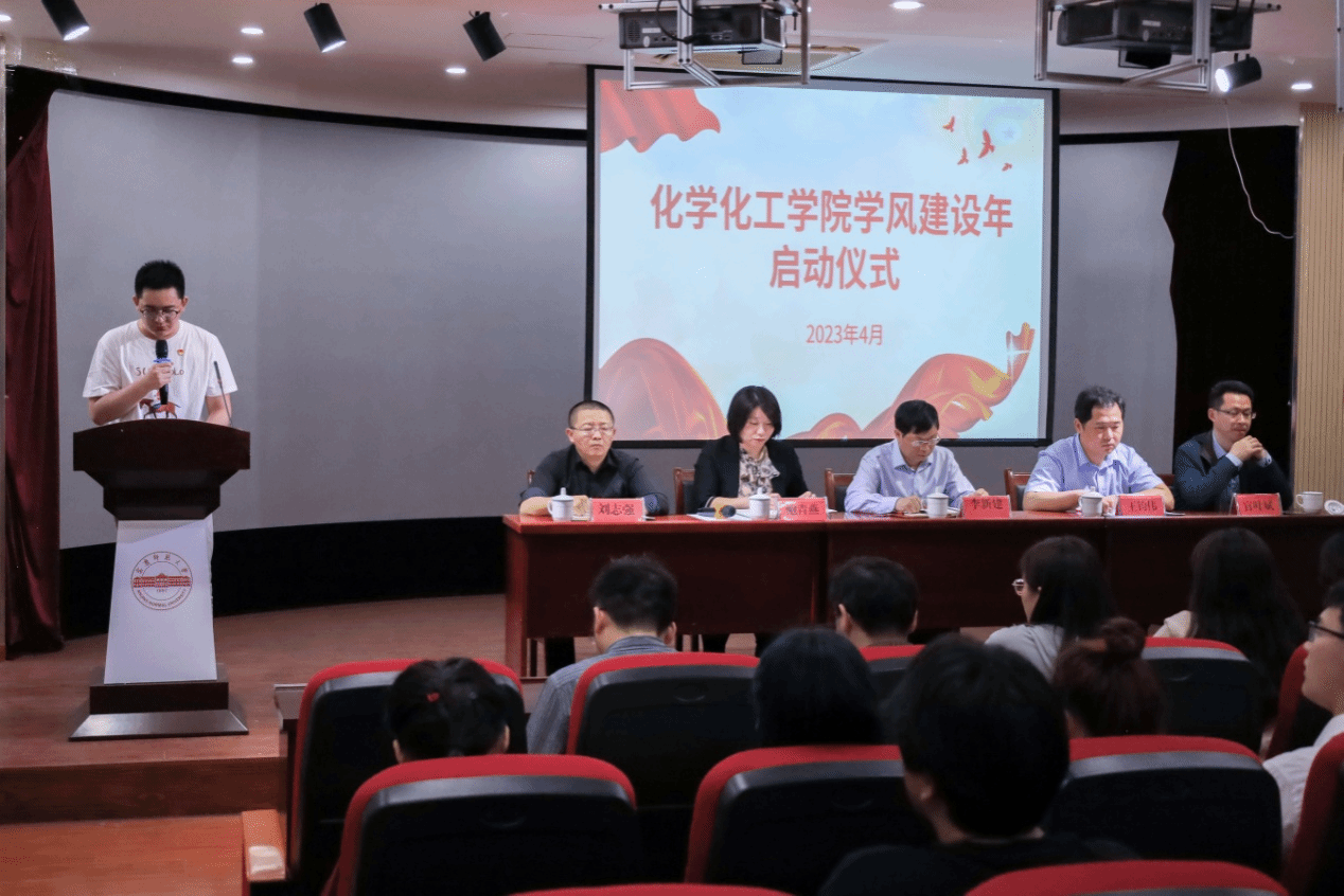 4月19日,化学化工学院举行学风建设年启动仪式,进一步推进学院学风建设,巩固已取得的学风建设成果,传承优良学风传统,明确学风建设新目标,提升学风建设新水平,营造良好的育人环境。学院全体党政领导,专业负责人、教研室主任、教学秘书、辅导员及学生骨干共200余人参加启动仪式。