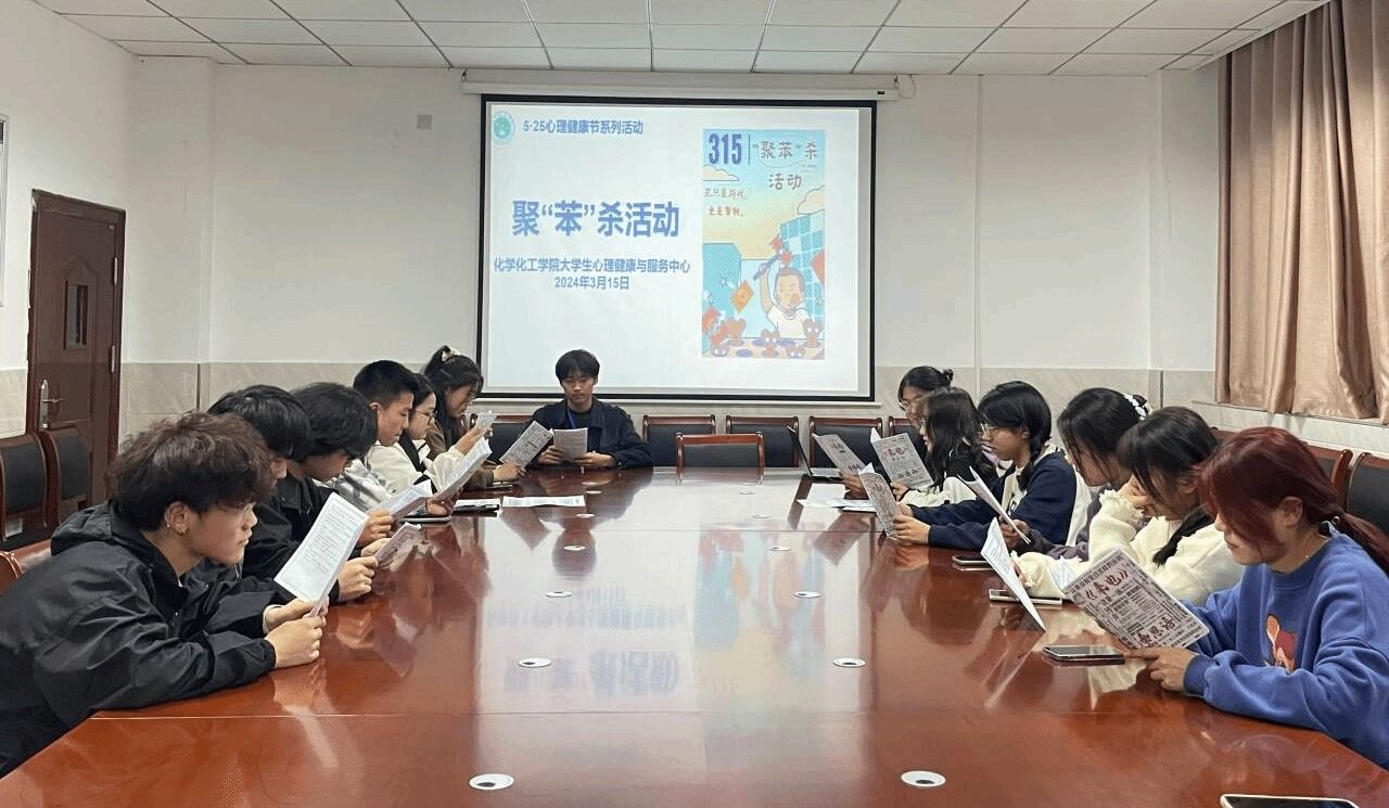 3月15号晚,化学化工学院大学生心理健康与服务中心开展聚“苯”杀活动,通过沉浸式体验的方式,让学生在游戏中学习反诈知识,学习反诈知识,增强自我保护能力。