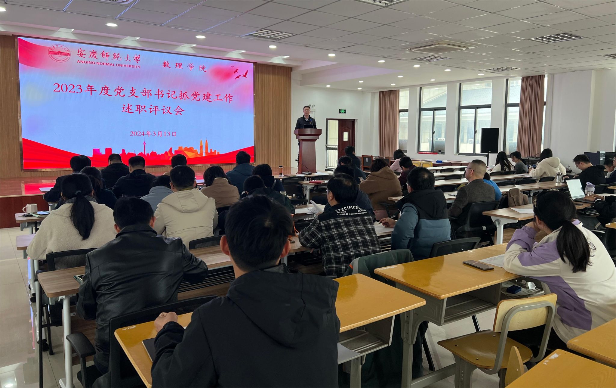 3月13日,数理学院召开2023年度党支部书记抓党建工作述职评议会。数理学院党委委员、纪委委员、各党支部书记、支部委员、教师和学生代表参加会议。会议由学院党委书记陆健主持。