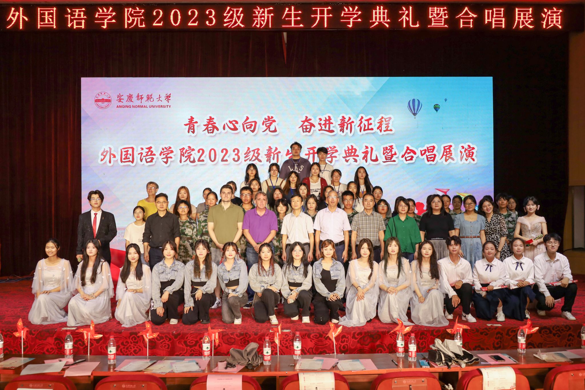 9月20日,外国语学院在图书馆东报告厅举行2023级新生开学典礼暨“青春心向党、奋进新征程”合唱展演。学院党委书记李亦亮,院长王先荣,副院长江加宏、瞿宁霞,党委副书记何媛君及教师代表出席,2023级全体本硕新生共400余人参加了典礼。