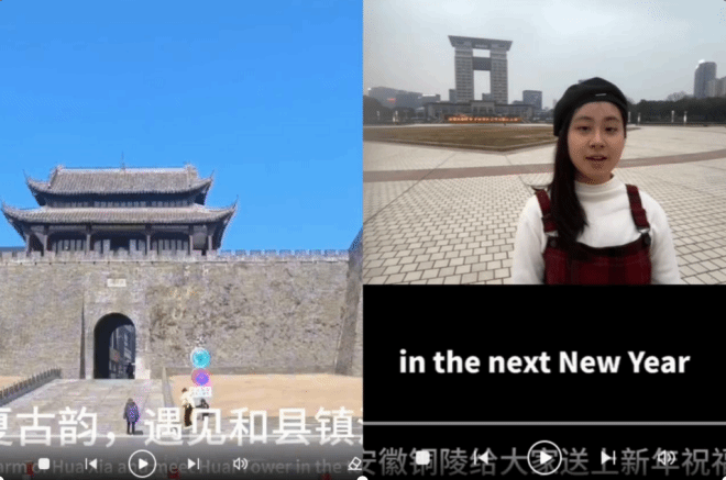 采用双语配音和字幕展示,直观地展现家乡特色建筑和人文历史文化,翻译专业2022(1)班的刘子妍利用夏天到冬天的时间完成了“爱家乡”双语视频拍摄。“作为一名畏惧说英语的‘外院人’,英文视频拍摄极大地增添了勇气。”刘子妍介绍,视频的拍摄、剪辑、翻译由自身独立完成,也让自己发现了家乡不一样的美。“相比文字,视频能够直接体现家乡的美,更能够发展鉴赏美和创造美的能力。”