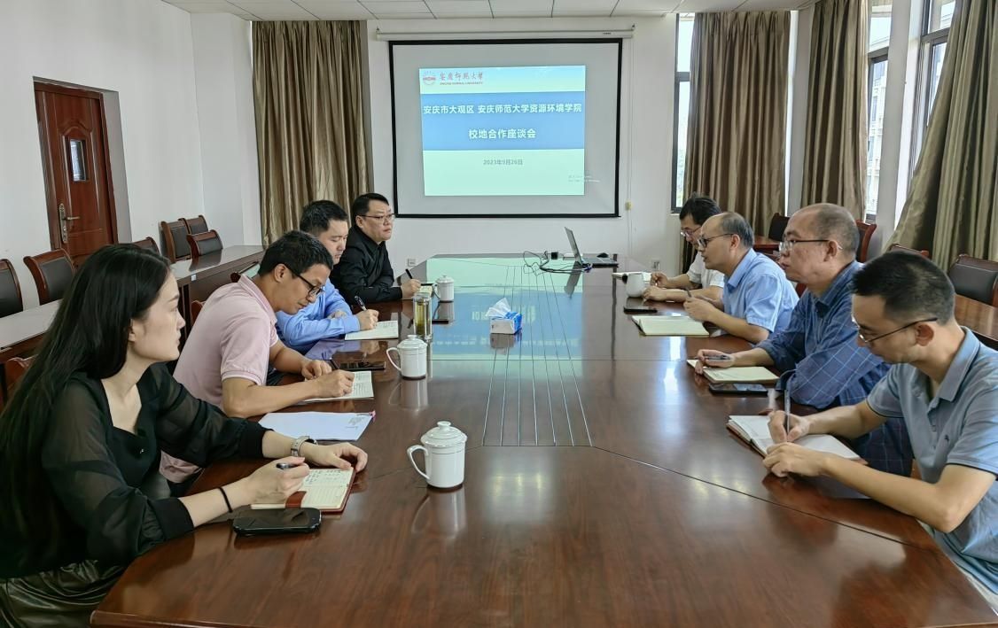 9月26日,安庆市大观区副区长赵刚一行四人来太阳成官网,与资源环境学院开展校地合作对接交流事宜。资源环境学院院长汪德进、副院长李法松和资源环境学院相关教师参与交流座谈。