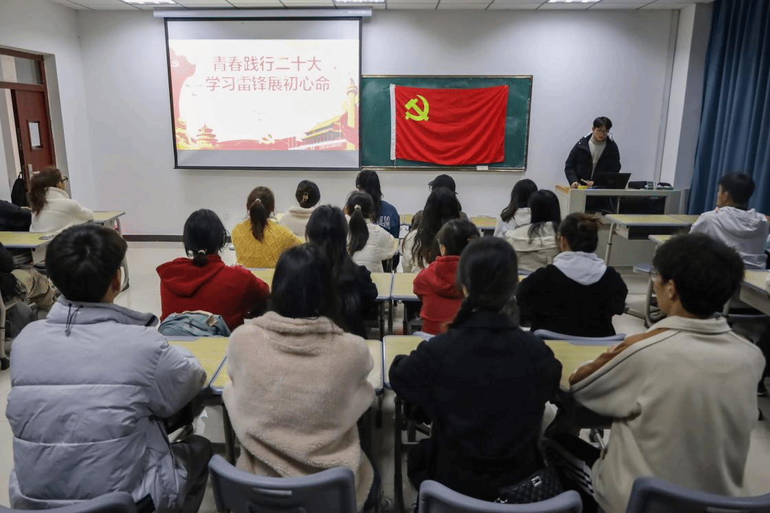“学习雷锋好榜样,忠于革命忠于党……”3月5日下午,学生党员齐聚M303教室,观看引领雷锋精神学习视频,感悟雷锋精神,汲取奋进力量。全体学生党员颂唱《学习雷锋好榜样》之歌,在淳朴简练的曲调和富有感情地颂唱中,深刻体会雷锋精神意义。为了让合唱整体更加和谐,大家提前练习,了解歌曲产生背景与情感内涵,提升合唱水准。