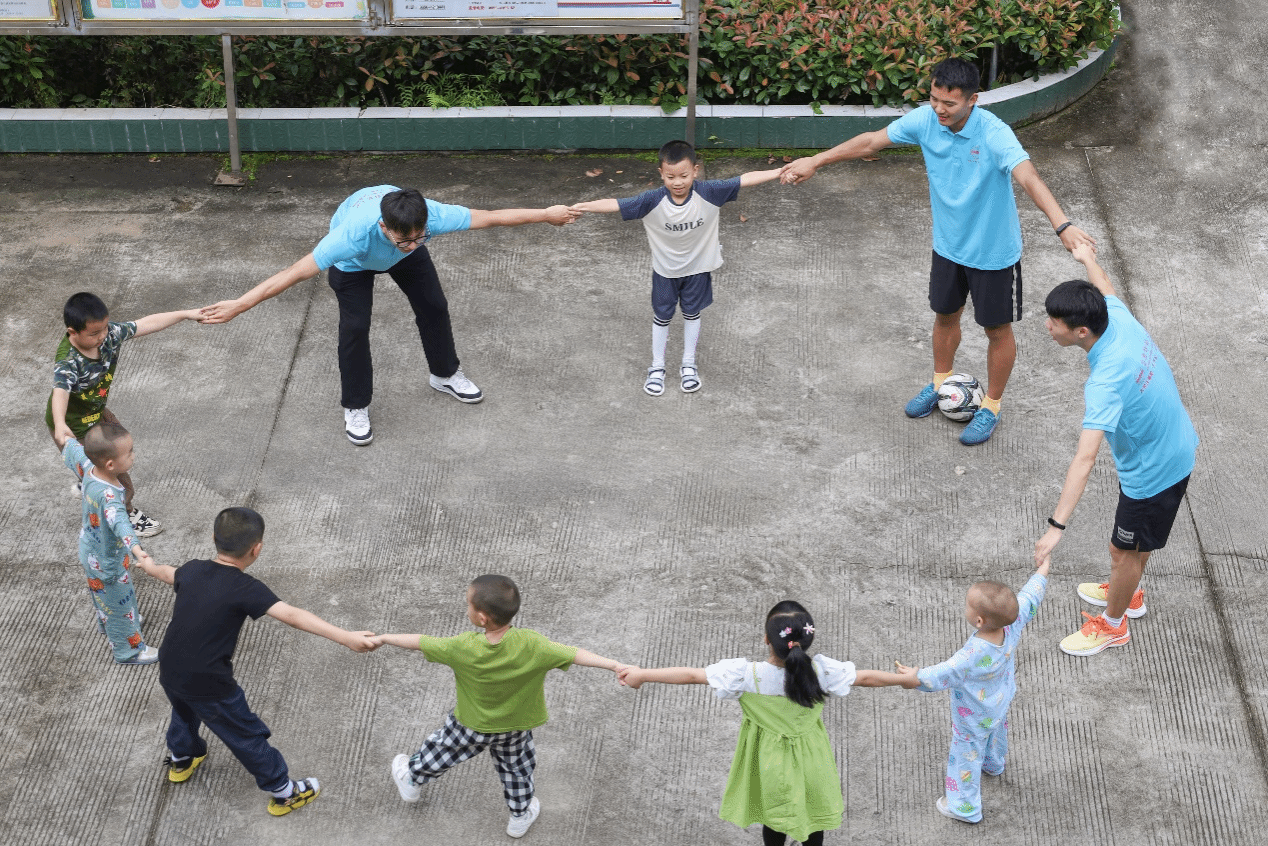 “支教点缺乏体育器材,所以我们从学校带来了足球、羽毛球等教具。”体育教育专业2021(1)班的朱继浩介绍,由于大部分小朋友年纪较小,所以体育教学活动采用分组教学。对于“年幼组”,志愿者们在体育课上开展儿童体适能训练,包含热身、低强度运动及拉伸与放松,活动儿童身体关节,增强身体柔韧性,培养良好的身体感觉和基础动作能力。对年龄较大的学生,志愿者们分组进行篮球、羽毛球、乒乓球等球类运动基础教学。
