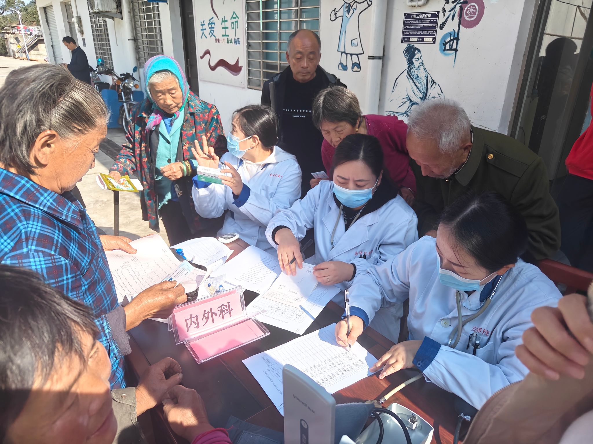11月23日,机关党委、校工会、校医院三部门联合在太湖县西冲村开展“乡村振兴 健康助力”健康义诊活动。