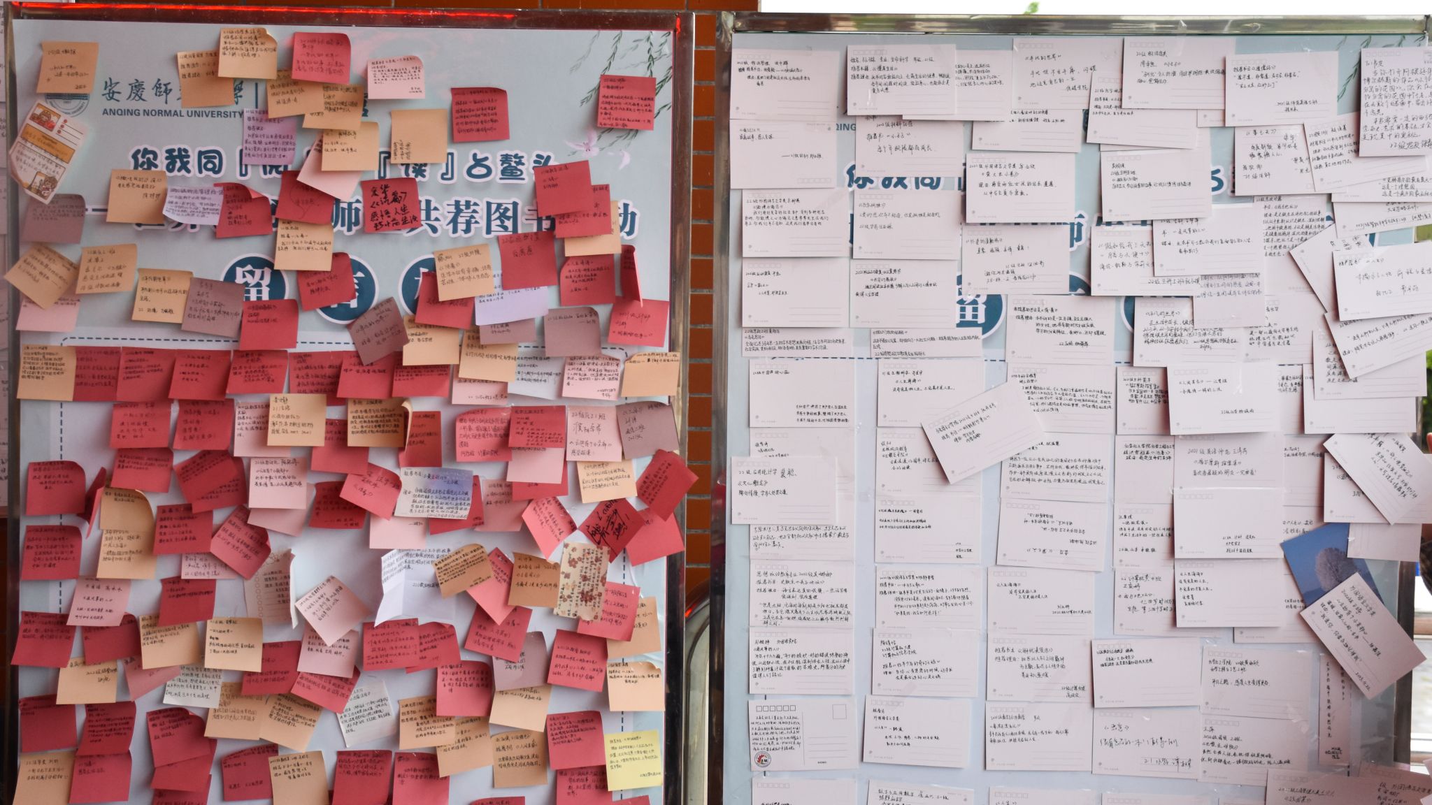 “人生本就是不完美的,勇敢面对!”“生活就像一盒巧克力,结果每每出人意料。”“人是为活着本身而活着。”……在场学生在横幅上签完姓名后,纷纷写下推荐该书籍的原因以及书籍里让他们印象最深刻的“金句”。900多张明信片和便利贴在工作人员的帮助下成功“登”上展板,供师生阅读。