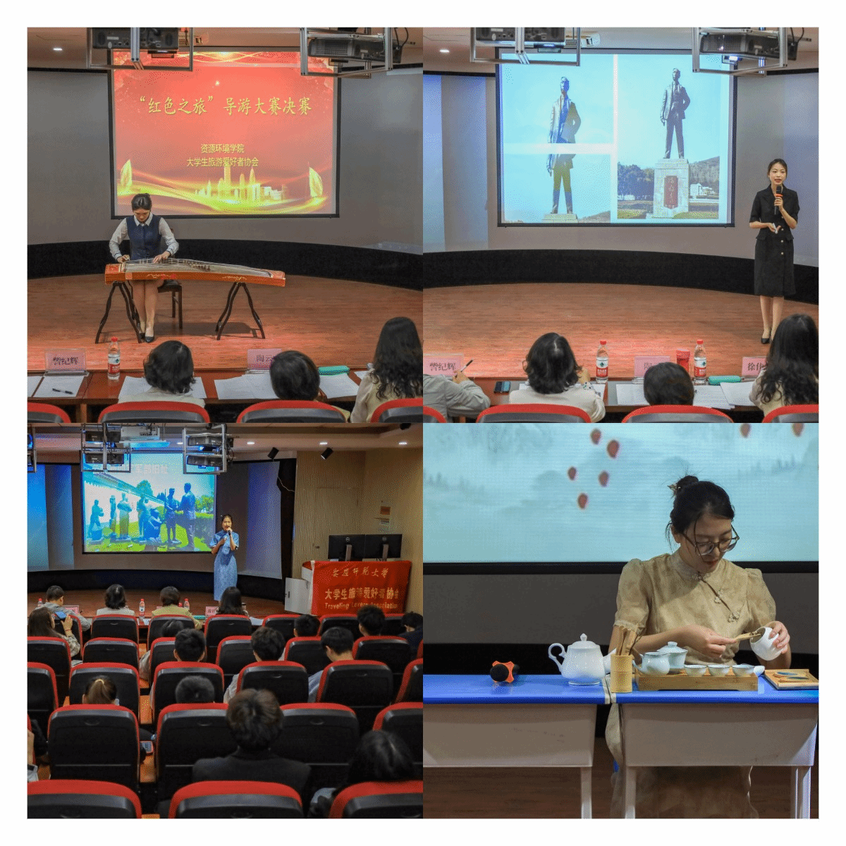 本次大赛以“逐梦二十大,以旅塑华章”为主题,由资源环境学院学生会与大学生旅游爱好者协会共同承办。参赛选手需从四个革命历史景点中选取其一,在8分钟内进行模拟导游讲解。此外,才艺展示与知识问答两个环节的表现情况也计入总分。