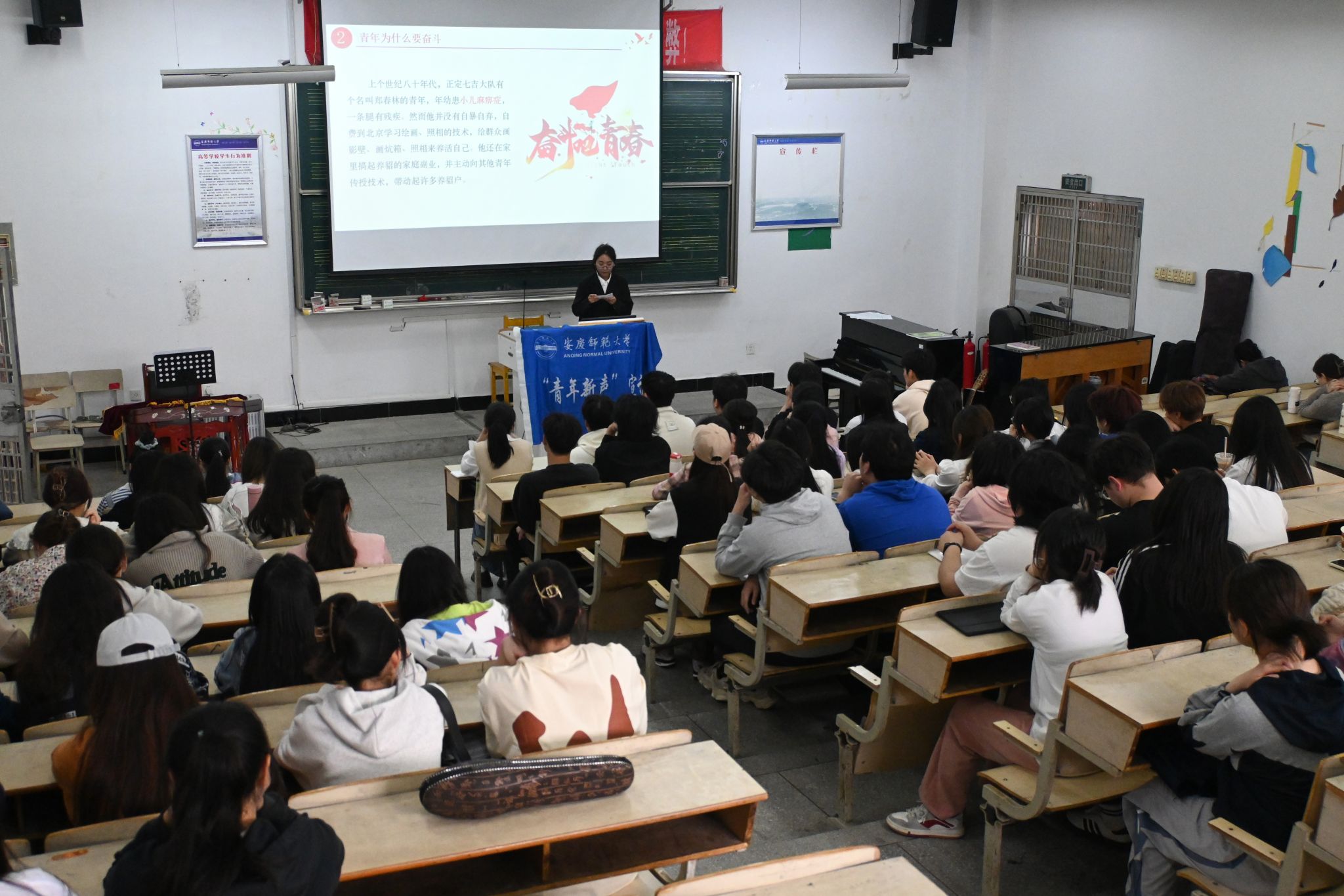 戴楠围绕“忆往昔观当下”“青年为什么要奋斗”“青年如何奋斗”三个方面展开讲述。她结合嘉兴南湖的一叶“红船”,冬奥会上00后的精彩表现以及《觉醒年代》中陈延年、陈乔年为革命献身的鲜活事例,强调青年应紧握青春时光,用探索、创新与奋斗浇筑属于青年人的精彩华章。