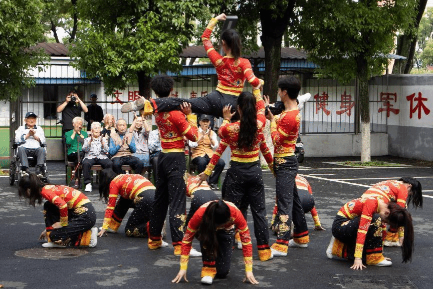 踮起脚尖,双臂从上至下挥动,时而婉约柔情,时而奔放热烈……12名体育表演专业的学生带来了舞蹈《同心共筑中国梦》,引得离退休老干部们纷纷叫好。“希望我们的舞蹈能为爷爷奶奶们带来快乐。”体育表演专业2021(1)班的孙雨欣表示,从表演服装到动作力度,她们已经准备了半个月,成员们每天都练习很长时间,只为给老人们带去最好的观看体验。