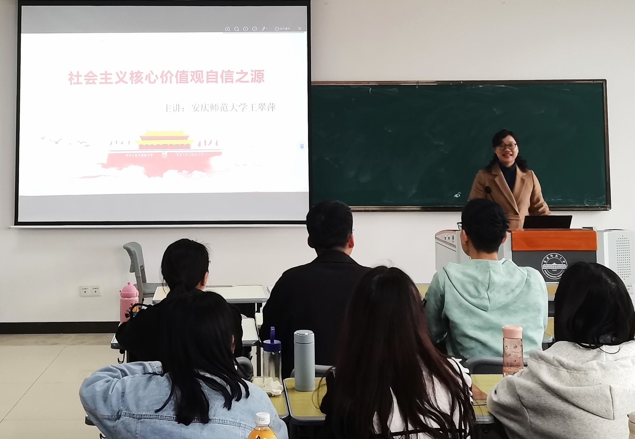 王翠萍主讲的题目为“社会主义核心价值观自信之源”。她认为,思政课要在“信”上下工夫,以信念作为中介;思政课教师要学会处理教材,对教材的内容进行转化。她以“何为社会主义价值观自信”这个问题为切入点,讲述了社会主义核心价值观的本质。