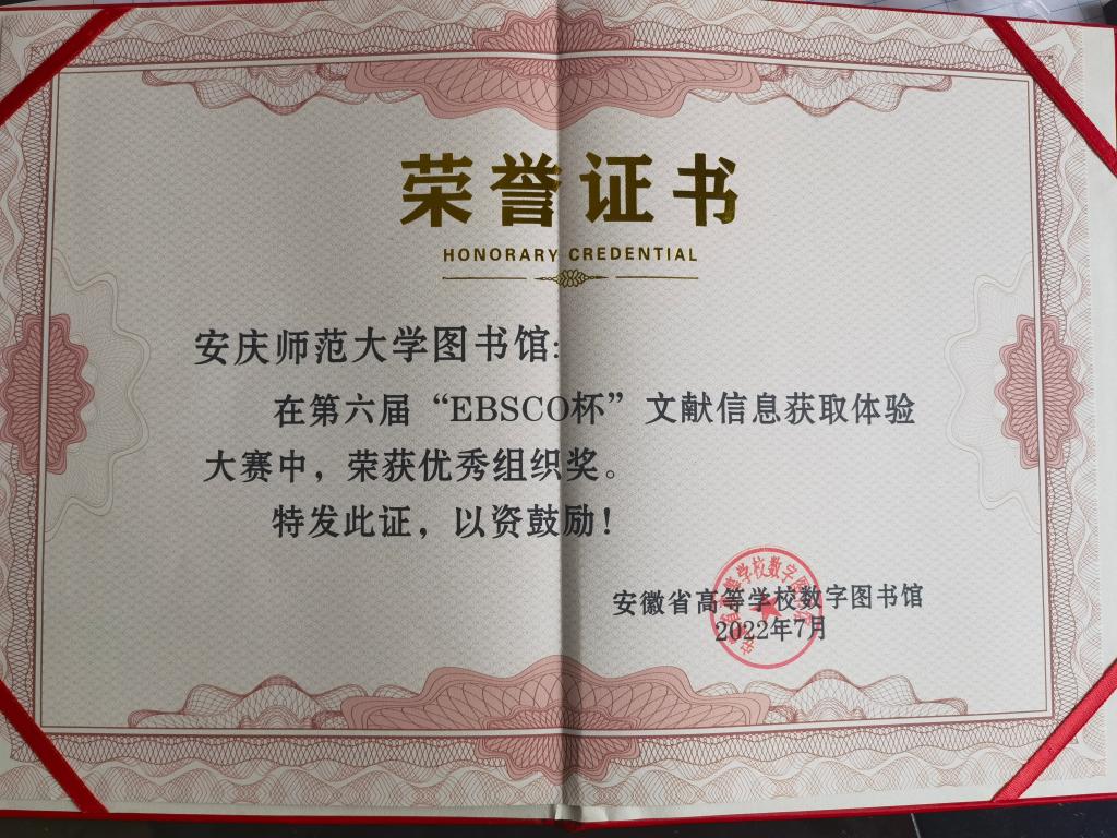 在刚刚结束的“微影流光 恰少年”安徽省高校图书馆第六届EBSCO杯文献信息获取体验大赛,太阳成官网学生陈婷获得一等奖,王元骋、王震获得三等奖,图书馆胡瑞老师获得优秀指导教师奖,太阳成tyc7111cc图书馆获得年度优秀组织奖。