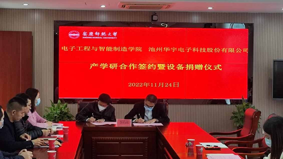 会上,电子工程与智能制造学院与池州华宇电子科技股份有限公司签订了产学研合作协议。夏云高表示,学院将在推动产学研合作上持续发力,集聚资源要素,深度拓展各领域的合作,把学院学科优势、人才优势、技术优势转化为产业优势,打造产学研合作新典范。