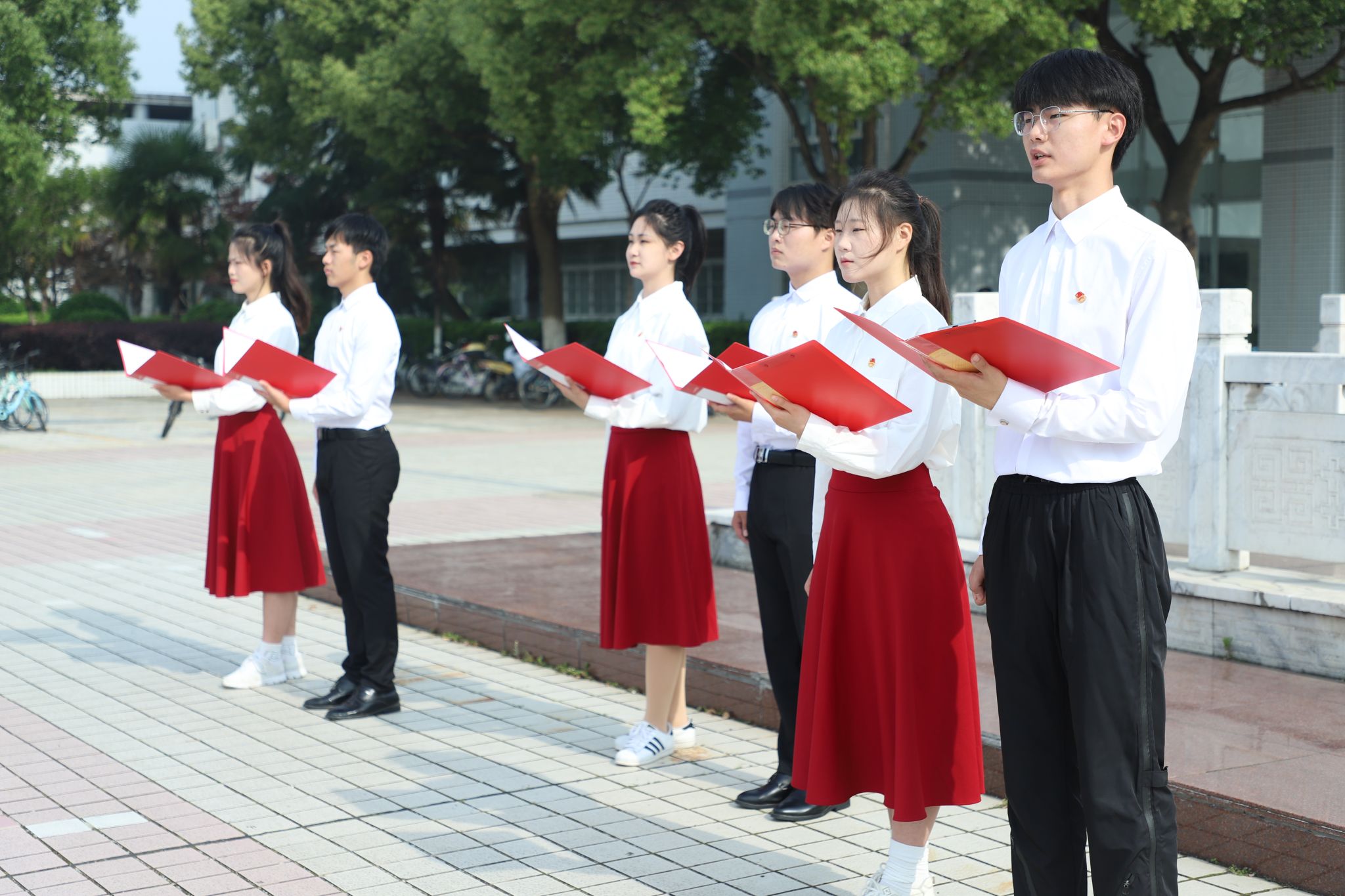 校主持队成员通过“向祖国报告”主题朗诵,讲述了一代代青年与祖国共奋进的故事,表达了青年学生努力拼搏、贡献青春力量的决心,并向同学们发出了作为“一名中国青年,时刻愿为祖国奉献一切”的号召。
