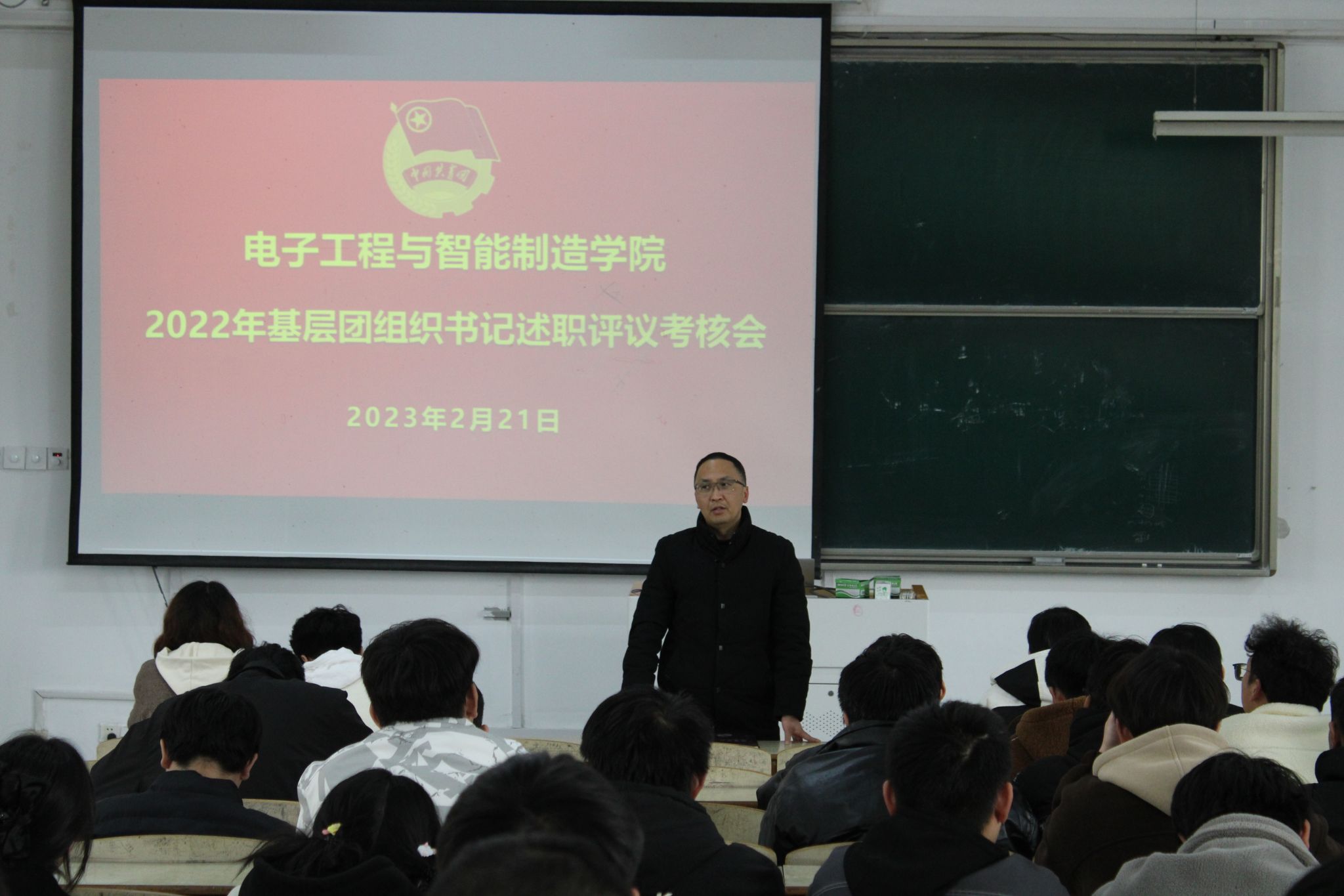 2月21日,电子工程与智能制造学院在稼先楼南100教室召开2022年度基层团组织书记述职评议考核会。学院党委副书记高栋梁、专职辅导员朱雨欣、刘旭、各班级团支部书记近100人参加会议,此次会议由团委负责人陈秋生主持。