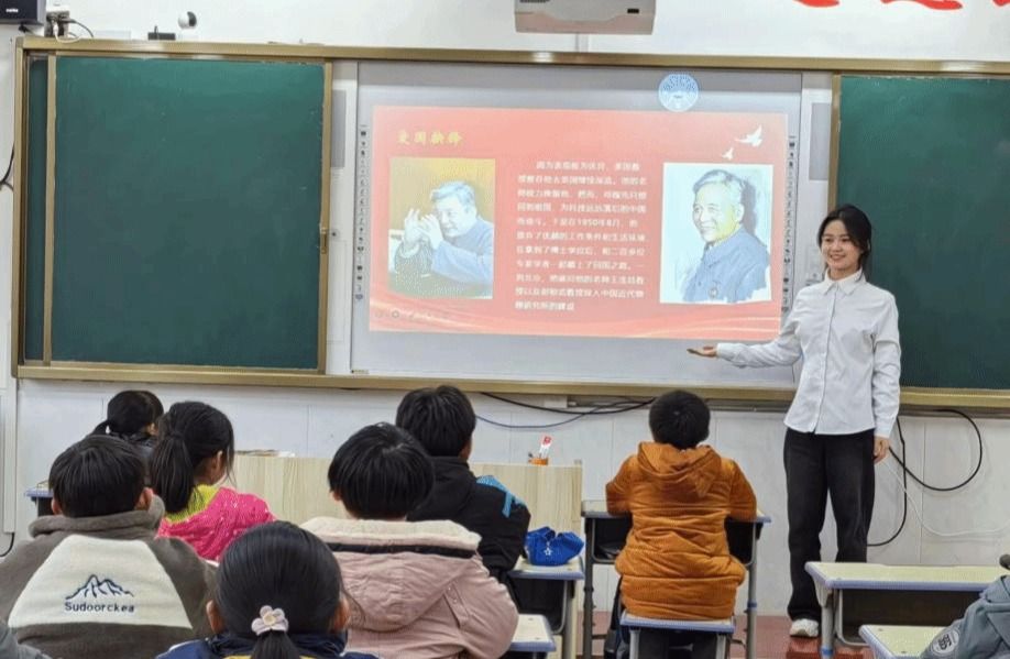 “同学们来猜一猜,两弹元勋邓稼先做出了如此伟大的功绩,国家给了他多少奖金呢?”电子信息类专业2022(3)班的贾翰迪在讲台上化身“小老师”,向家乡小学的学生们提问。“一万!”“不对,不对,是十万!”……学生们纷纷举手抢答。“原子弹奖励了十元,氢弹奖励了十元。”当贾翰迪说出答案时,学生们纷纷表示难以置信。“邓稼先先生对祖国的深沉热爱以及他无私奉献的精神,在我心中留下了深刻的印象。”其中一名学生表示,通过这场宣讲,他更加坚定了报效祖国的决心。