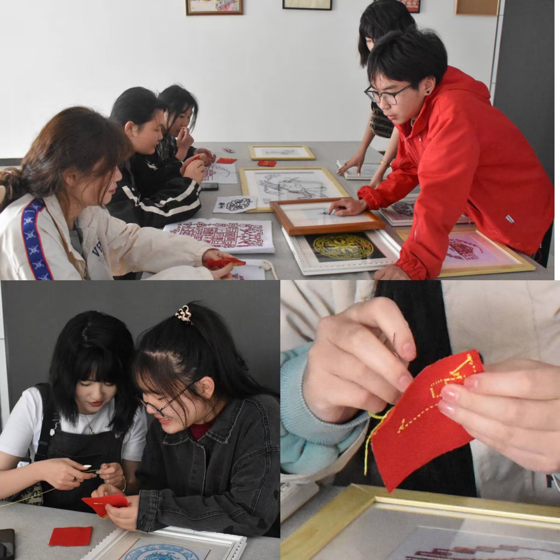 “第一眼看到便觉得这些作品十分精致,构图优美,色彩对比强烈,正反面也相映成趣。”美术学专业2022(3)班的张运表示,之前虽然有和妈妈一起绣过十字绣的经历,但像这种组织形式变化多样的绣法还是第一次体验。“感觉很新奇,希望能学习一些相关的绣法技巧,还可以教给妈妈。”