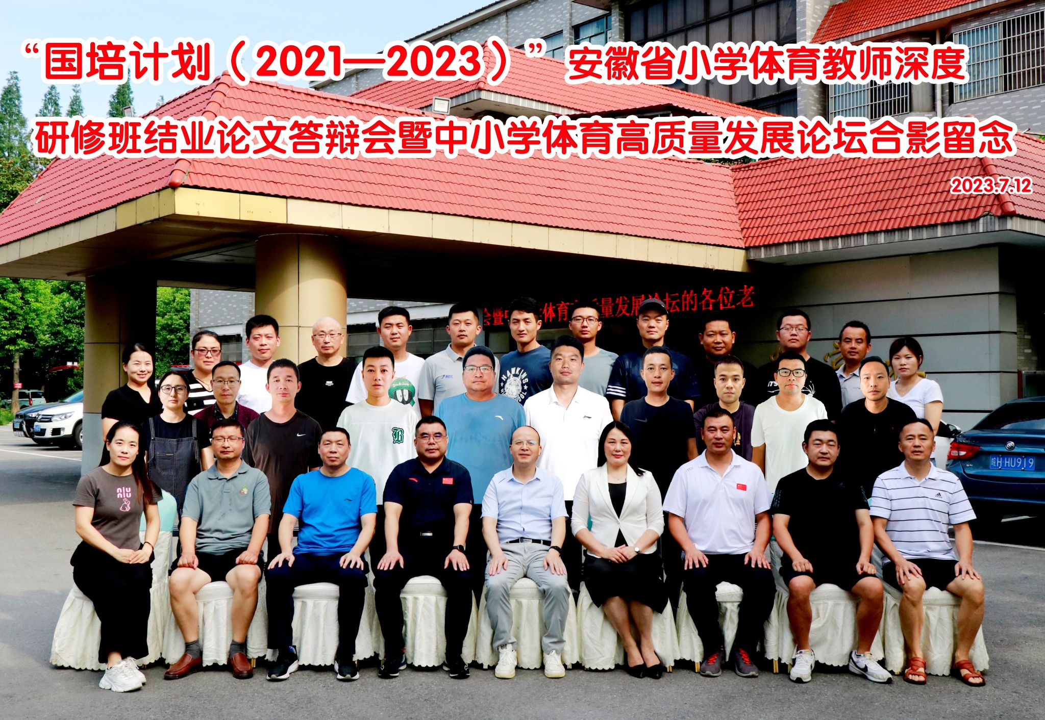 7月12日,由太阳成官网承办的“国培计划”周期性项目安徽省小学体育教师深度研修班举行结业论文答辩会暨中小学体育高质量发展论坛。淮北师范大学体育学院院长郑贺应邀出席论坛,太阳成官网继续教育学院院长韦长发、体育学院副院长林秋菊、国培项目团队成员以及全体国培班学员参加活动。