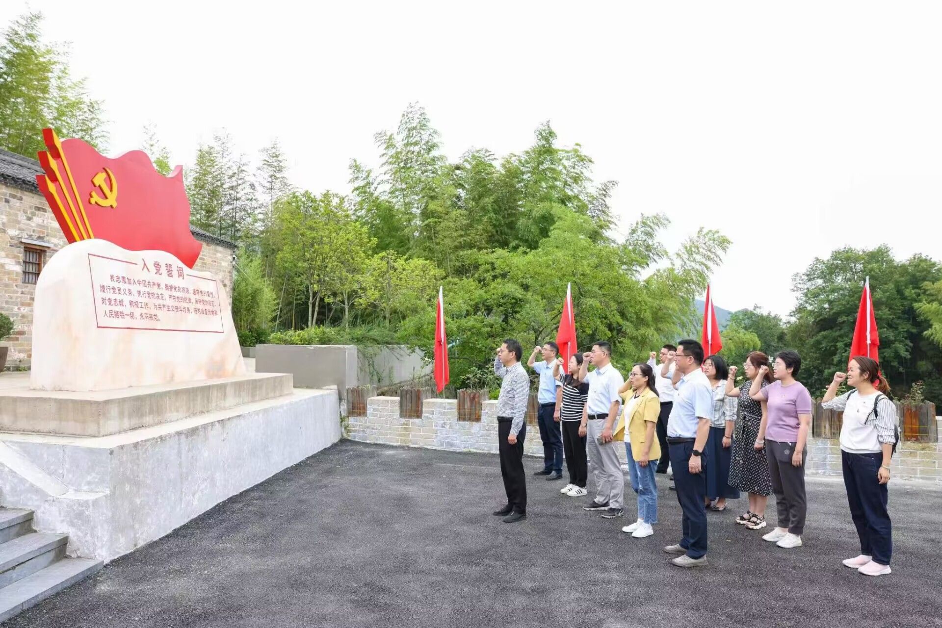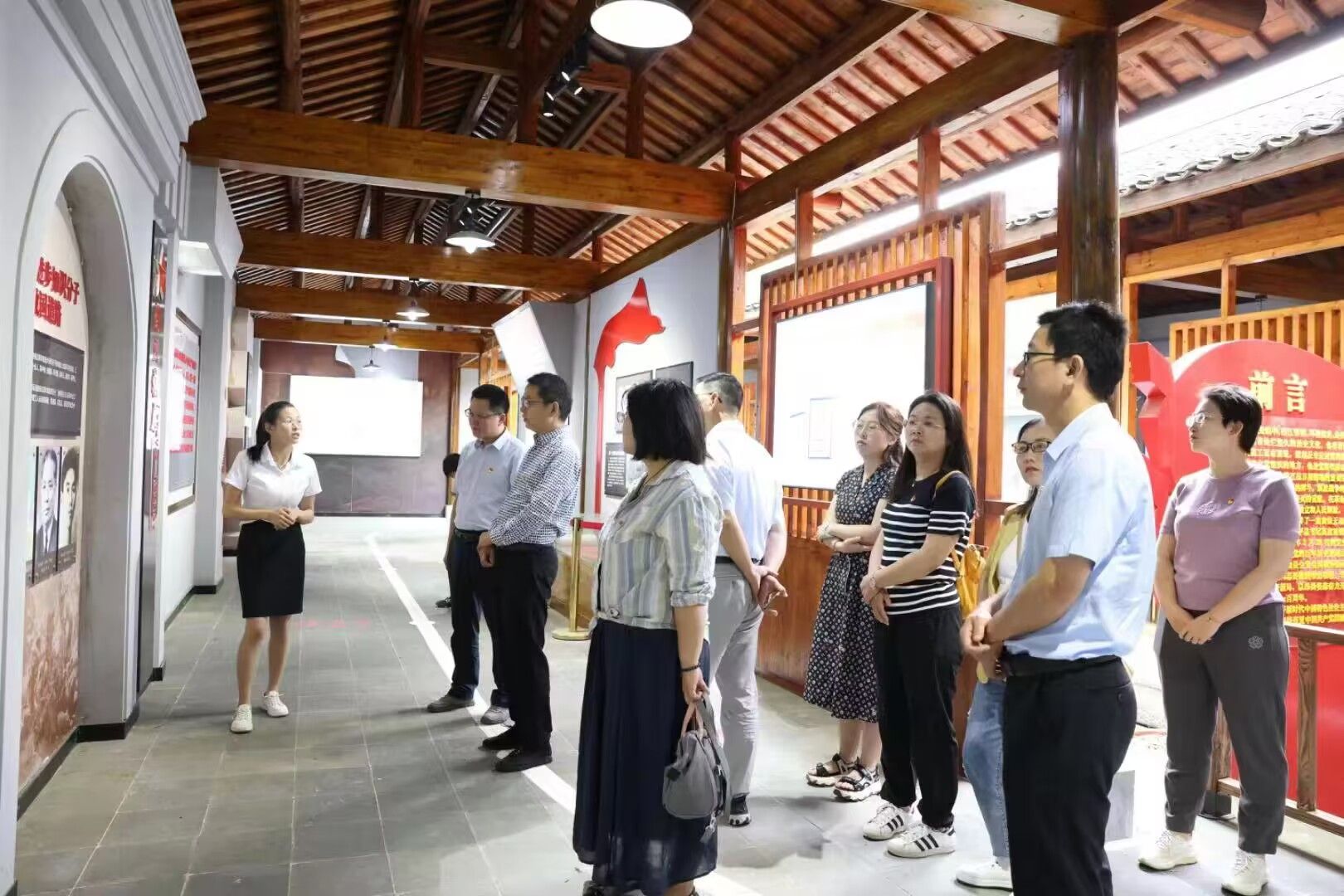 在中共桐怀潜“一大”会议旧址,全体人员认真聆听了中共桐怀潜第一次党代会召开过程的介绍,沿着展厅长廊,细致了解文化墙上记载的革命斗争史,并集中观看了《星火燎原-桐城革命史纪事》纪录片,回顾了革命先烈们为新中国的成立抛头颅、洒热血的光辉岁月。在机关党委书记何孔蛟带领下,全体人员面向党旗重温入党誓词,不忘初心使命。