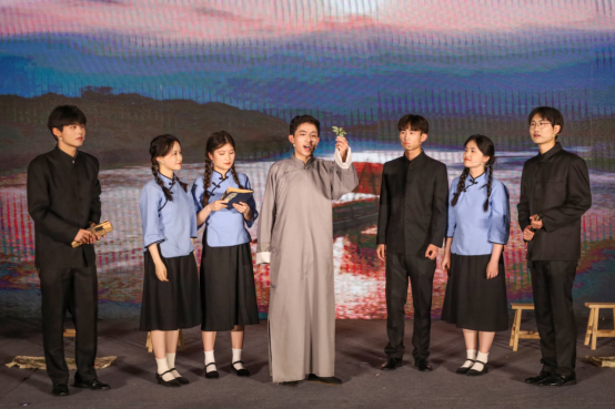 确定主题、研讨情节、钻研角色……从搜集整理相关材料,到打磨剧本、反复彩排,再到公开首演,团队历时近4个月。演员们反复揣摩人物台词、动作、语气、面部表情等要素,力求真实地展现时代的风云变幻,塑造为民族命运奔波抗争的人物形象。为呈现最佳演出效果,在话剧社指导老师的建议下,学生们还在人物妆造、灯光音效、舞台设计等方面进行了改进。
