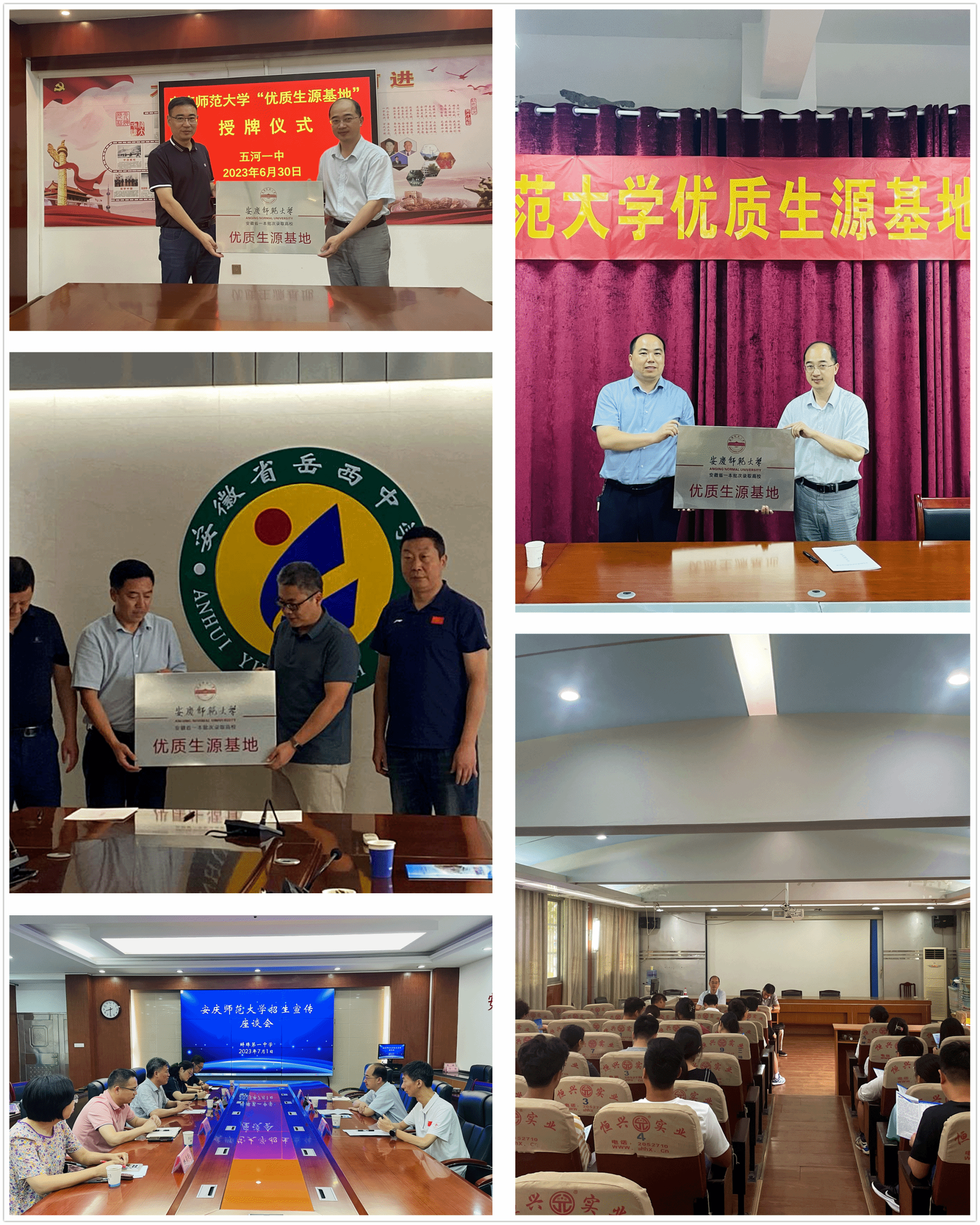 招生宣传组一行分别与五河第一中学、固镇县毛钽厂实验中学、安徽岳西中学签订优质生源基地的合作协议并授牌,回访了安徽省蚌埠第一中学。学院相关负责人分别向4所中学详细介绍了学校办学历史、办学条件、学科建设、专业特色、人才培养等基本情况,解读了今年的招生政策,尤其是介绍了体育学院办学情况。4所中学相关负责人对学校办学水平和人才培养质量予以高度肯定,对学校招生政策和录取要求有了更深了解,并表示将会组织、动员符合条件的优质生源积极报考,到大学进一步深造发展。招生宣传组在五河第一中学召开了招生宣讲专场,耐心细致地向考生和家长们解答每一个问题,鼓励广大考生积极填报太阳成官网。