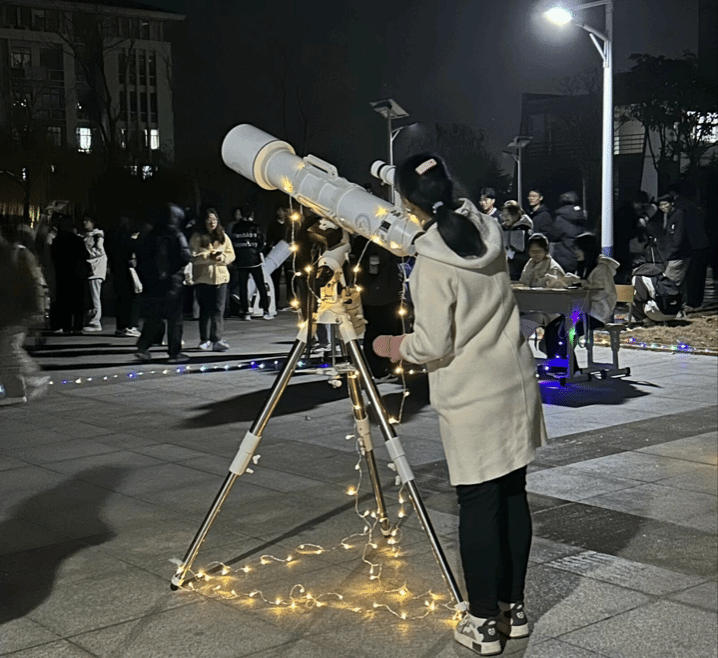 12月9日,由数理学院大学生天文爱好者协会主办的“天文之夜”主题活动在数理学院前广场如约举行,前来参与同学络绎不绝,活动现场气氛十分热烈。