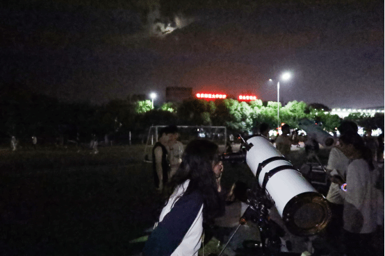 “由于望远镜的焦距可以调整,当我们观测月亮时,是否佩戴眼镜对观测到的景象没有影响。”天文观测现场,天文与天体物理研究所成员、大学生天文爱好者协会指导教师徐骏为前来观测圆月的学生讲解了天文知识与观测技巧。听完徐老师的科普后,新闻传播学类专业2023级(2)班的范佳与苏月月表示,她们对天文学有了更加深入的了解,产生了浓厚的兴趣。“学校的文娱活动太丰富了!参与这些活动是我们舒缓学业压力、放松心情的好机会。”苏月月笑称。