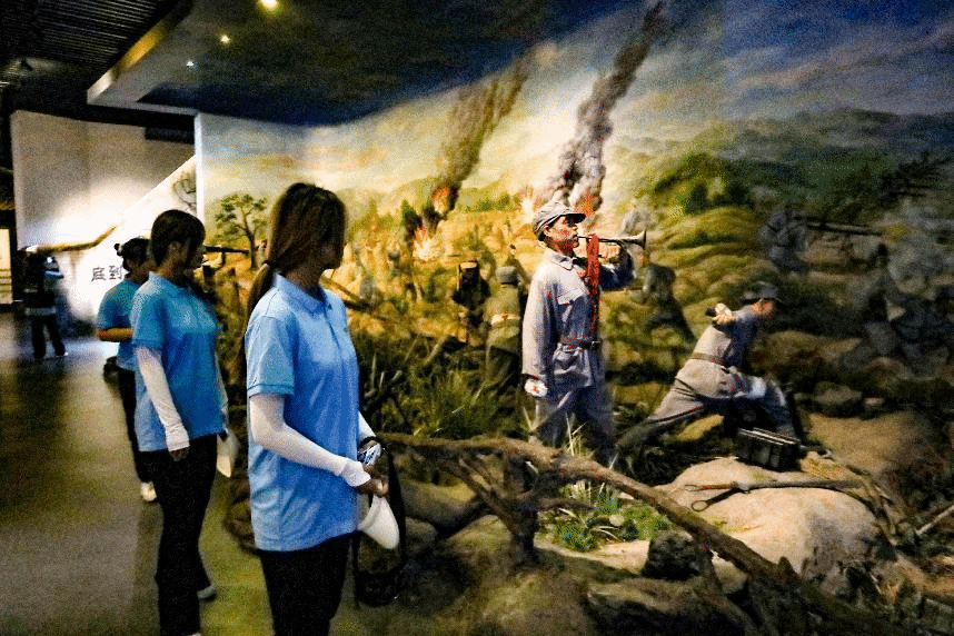幻影成像、物理沙盘、智能触摸屏……烈士纪念馆通过多种形式还原历史事件,并配以丰富的图文解说和文物,使团队成员们深刻了解到在不同时期为安庆革命事业牺牲的烈士事迹。“没有先烈们的付出,就没有繁荣富强的祖国,人民也过不上幸福美好的生活。”实践团成员、体育教育专业2021(4)班的阮懋为是一名退伍学生,参观完烈士纪念馆,他表示:“我会向前辈们看齐,做好学生本职工作,学好专业知识,尽自己所能为祖国做贡献!”
