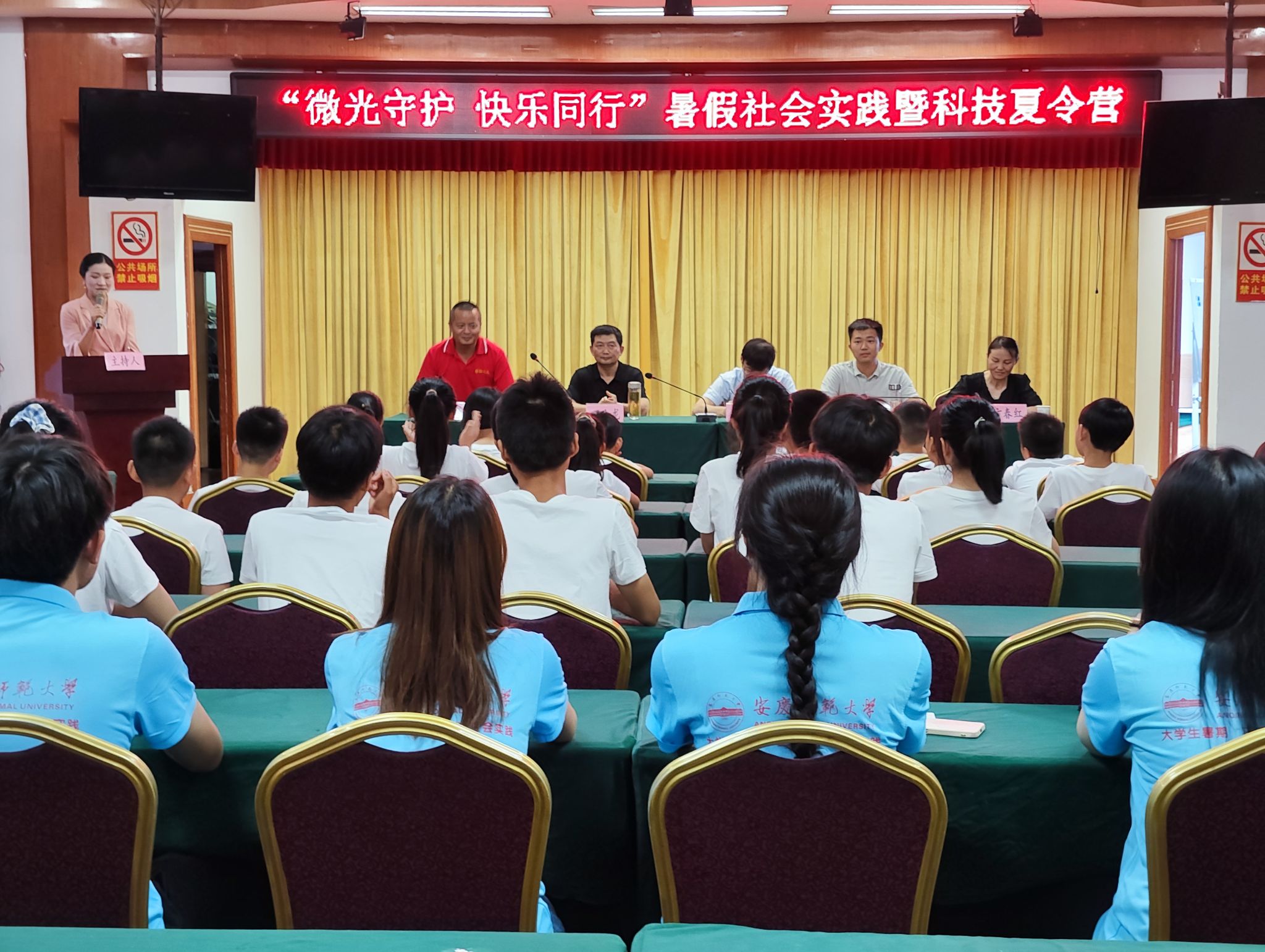 戴士清致欢迎词,希望实践队员坚定信念、精心组织、学以致用。方春红就科技普及活动安排作了说明。郭忠义向营员代表授营旗。钱小雨代表实践团队就活动的前期准备和课程设置汇报。