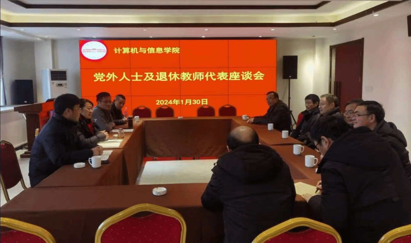 1月30日,计算机与信息学院举办党外人士及退休教师座谈会,学院班子全体成员、党外人士代表以及近两年荣休的老教师参加座谈会。党委副书记刘燕杰主持座谈会。
