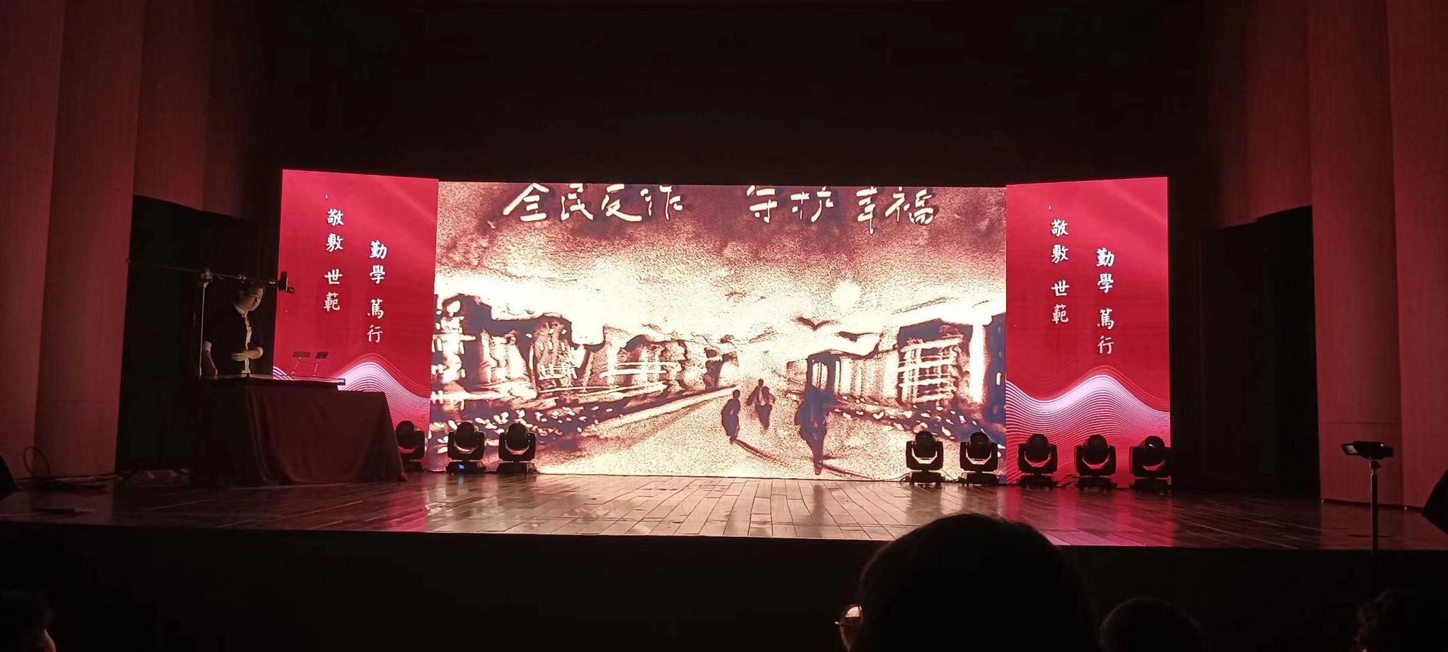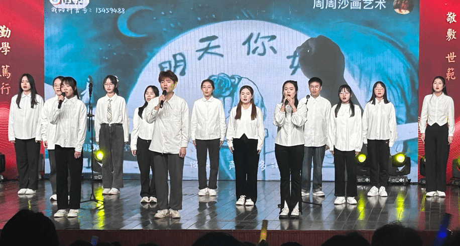 黄梅戏《木兰从军》中的优美唱腔和舞台身段相结合,表演者身着红色盔甲,手持旌节与红缨枪,英姿飒爽;学院主持队带来的诗朗诵《英雄》激情澎湃,字句间处处抒发着爱国之情;好果汁乐队带来的歌曲串烧《你要跳舞吗》《再飞行》热情向上、动感十足,点燃了现场的氛围;民乐合奏《恭喜发财》欢快流畅,彰显了流传千年独属于中华民族的音乐之美……