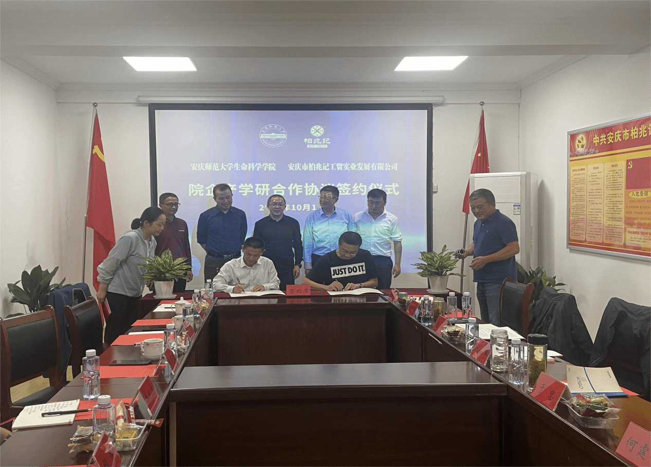 10月18日,生命科学学院党委书记朱昌流、副院长吴彦率队前往安庆柏兆记工贸实业发展有限公司,双方签订院企合作协议。大观区区委常委、组织部长刘小平,大观区区委组织部常务副部长高欣,大观区人才发展促进中心主任柴盈,花亭街道办事处党工委书记何霆钧,安庆柏兆记工贸实业发展有限公司董事长于忠等参加签约仪式。签约仪式由高欣主持。