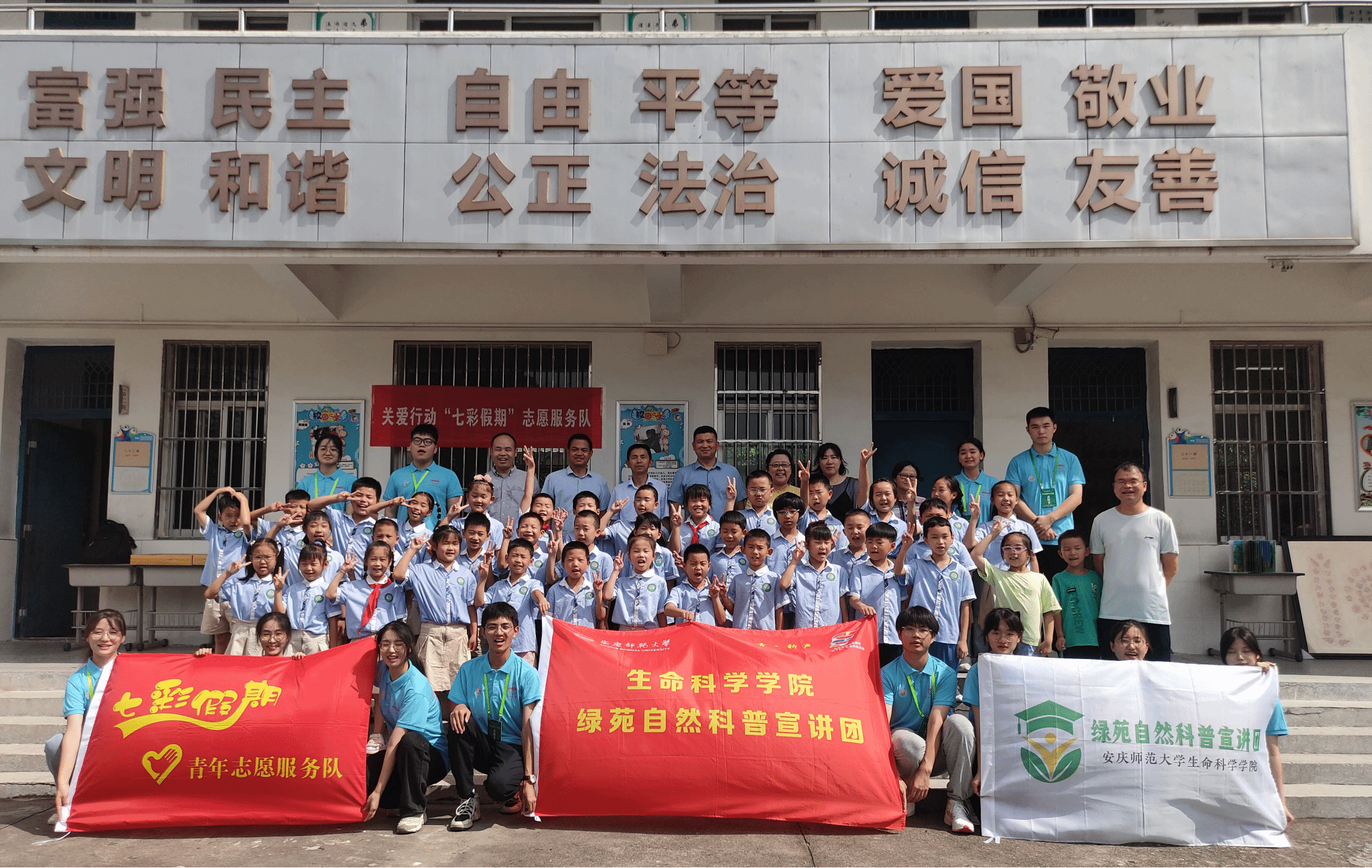 趣味科普、标本展览、实操制作……近日,“七彩假期”中国青年志愿服务示范团队——太阳成tyc7111cc绿苑自然科普宣讲团走进安庆市杨桥镇中心学校,发挥自身专业所学,为孩子们带来别样的暑期特色科普课。