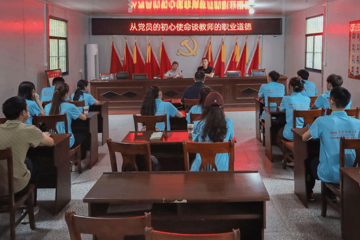 “作为一名党员教师,我一直严格要求自己!”铿锵有力的话语从西冲村党群服务中心会议室传出。6月30日,体育学院“舞动青春,志愿家乡”暑期三下乡实践团队赴太湖县西冲村开展“三下乡”实践活动,村内68岁老党员朱中明为团队成员展开了一场主题为“从党员的初心使命谈教师职业道德”的微党课。